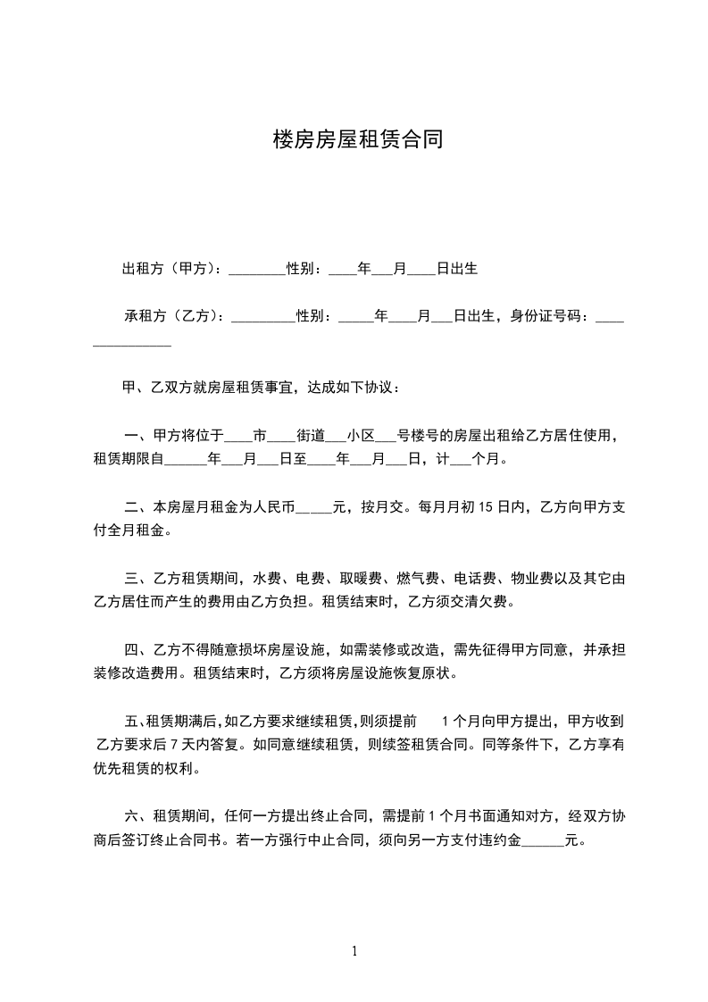 承租方(乙方):_________性别:_____年____月___日出生,身份证号码:_______________