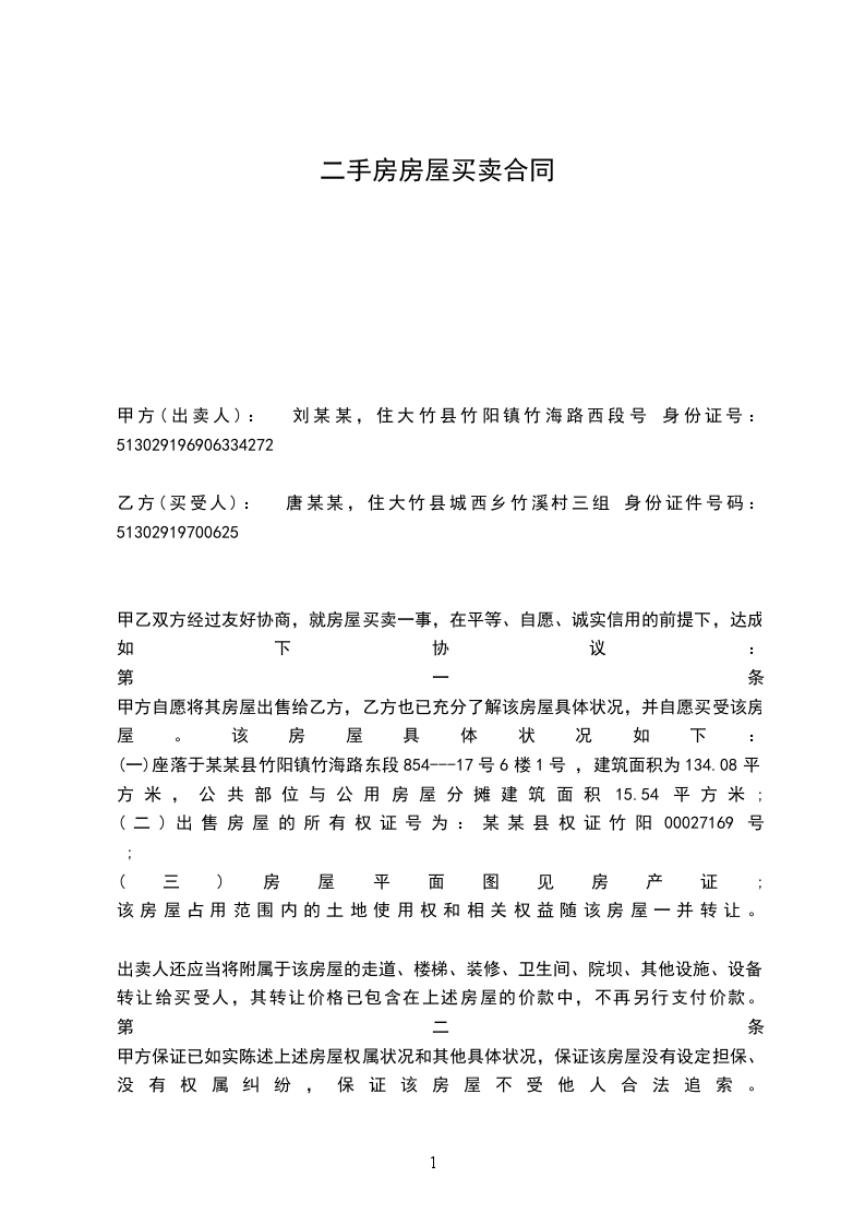 甲方(出卖人): 刘某某,住大竹县竹阳镇竹海路西段号 身份证号:513029196906334272