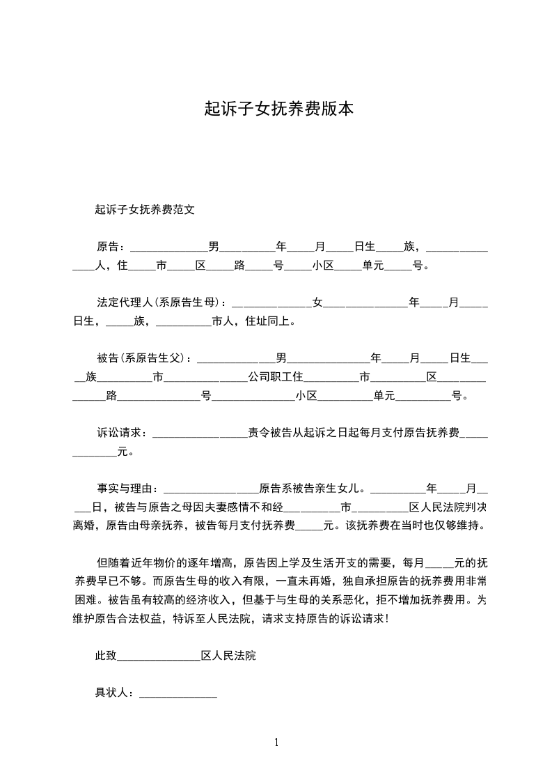 原告:______________,女,________年____月____日生,汉族,住址:_________________电话:_____________