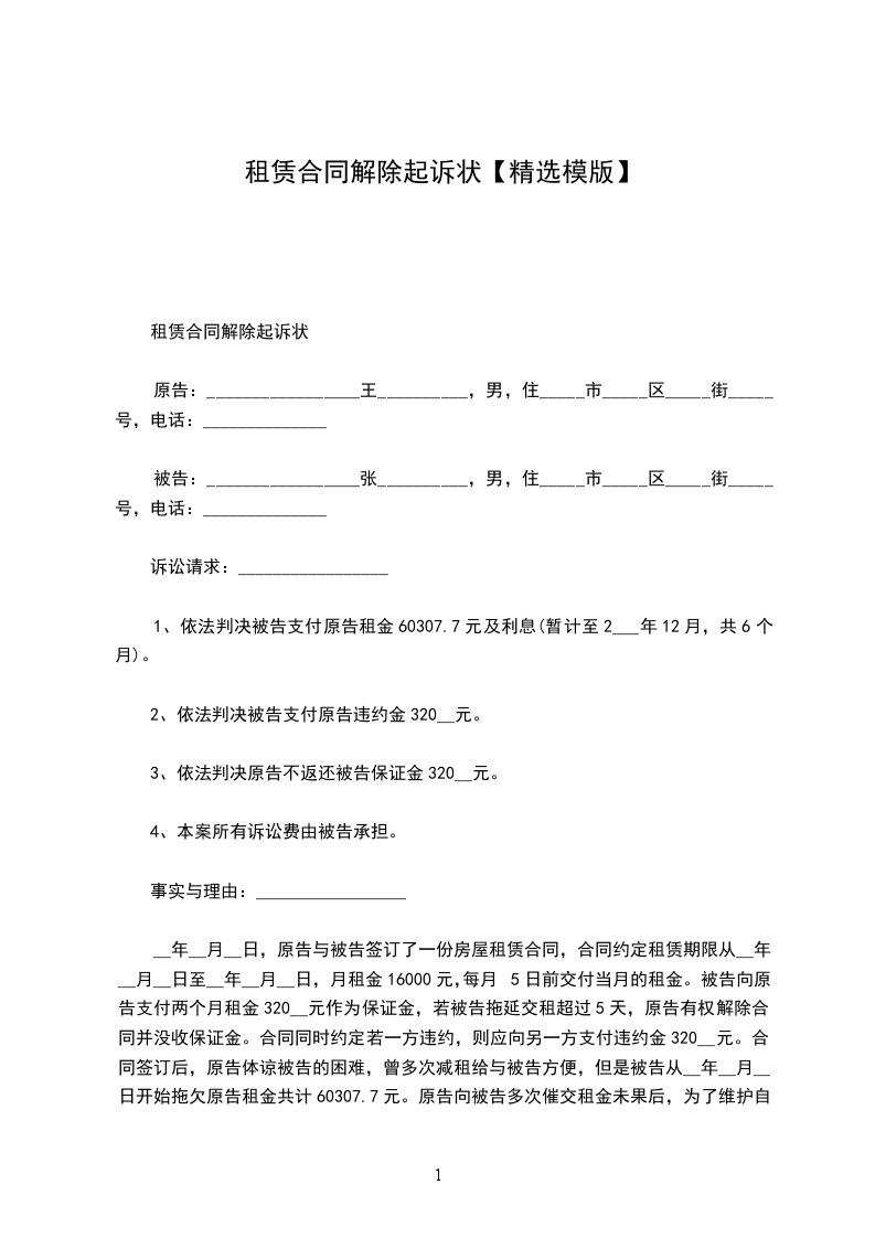 __________区人民法院这就是一份解除合同的起诉状