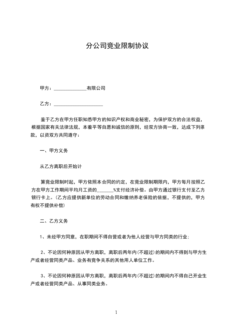 1、未经甲方同意,在职期间不得自营或者为他人经营与甲方同类的行业;