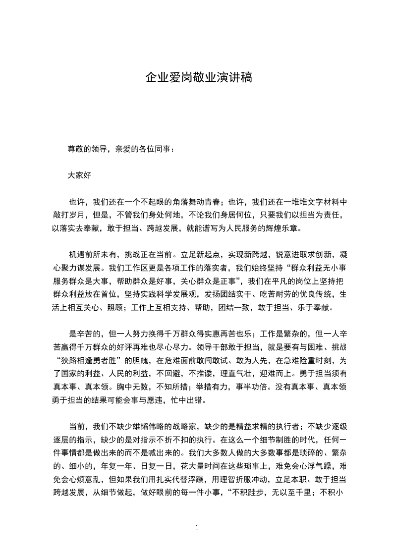 当前,我们不缺少雄韬伟略的战略家,缺少的是精益求精的执行者;不缺少逐级逐层的指示,缺少的是对指示不折不扣的执行。在这么一个细节制胜的时代,任何一件事情都是做出来的而不是喊出来的。我们大多数人做的大多数事都是琐碎的、繁杂的、细小的,年复一年、日复一日,花大量时间在这些琐事上,难免会心浮气躁,难免会心烦意乱,但如果我们用扎实代替浮躁,用理智折服冲动,立足本职、敢于担当、跨越发展,从细节做起,做好眼前的每一件小事,“不积跬步,无以至千里;不积小流,无以成江海。”在平凡中做出不平凡的坚持,那就是平凡中的伟大。既要勇于担当,又要跨越发展。我们要展现爱岗敬业、无私奉献的风采。爱岗敬业是这个时代应该持之以恒追求的精神。