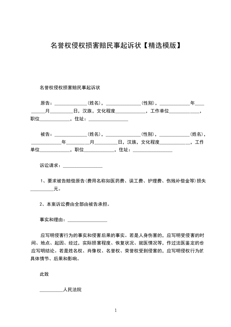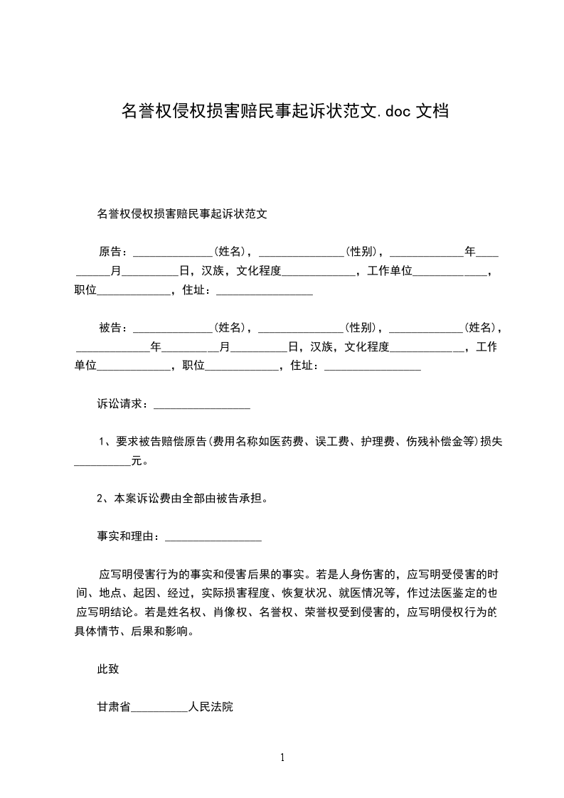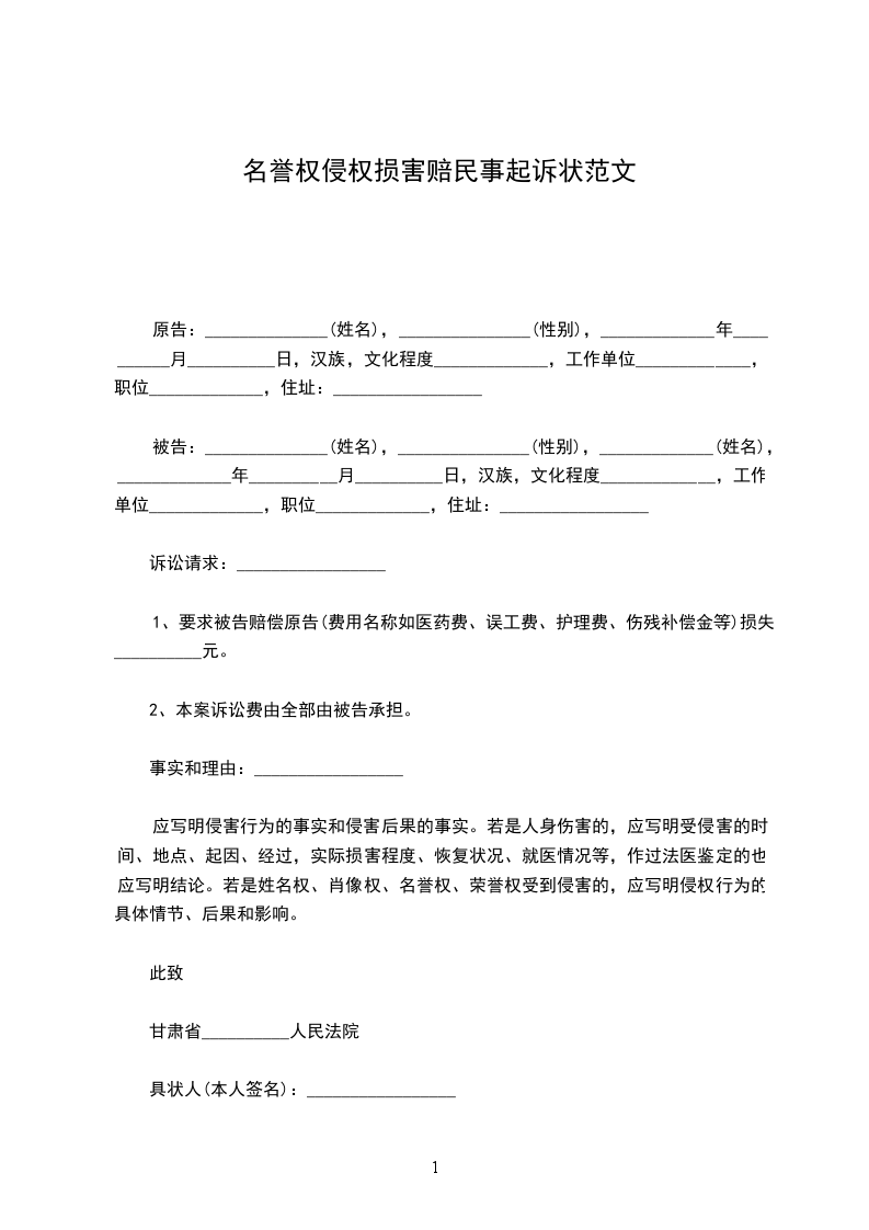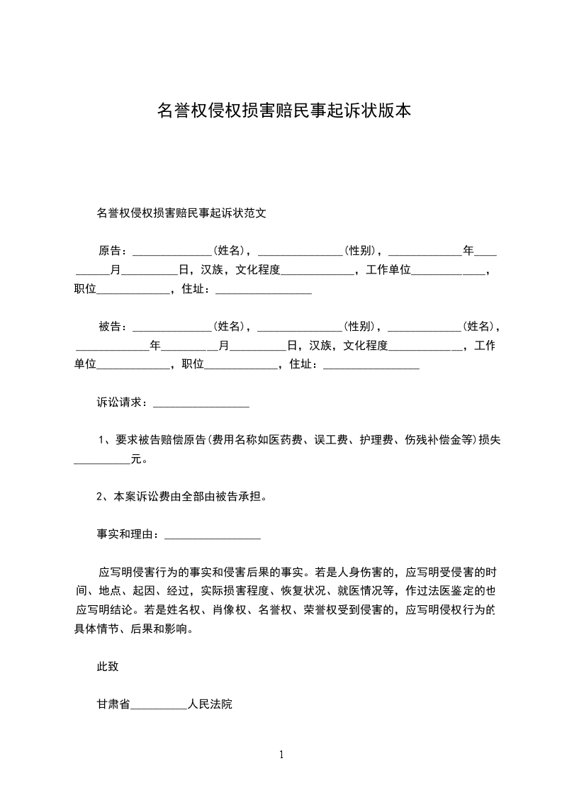 原告:______________(姓名),_______________(性别),_____________年__________月__________日,汉族,文化程度_____________,工作单位_____________,职位_____________,住址:_________________