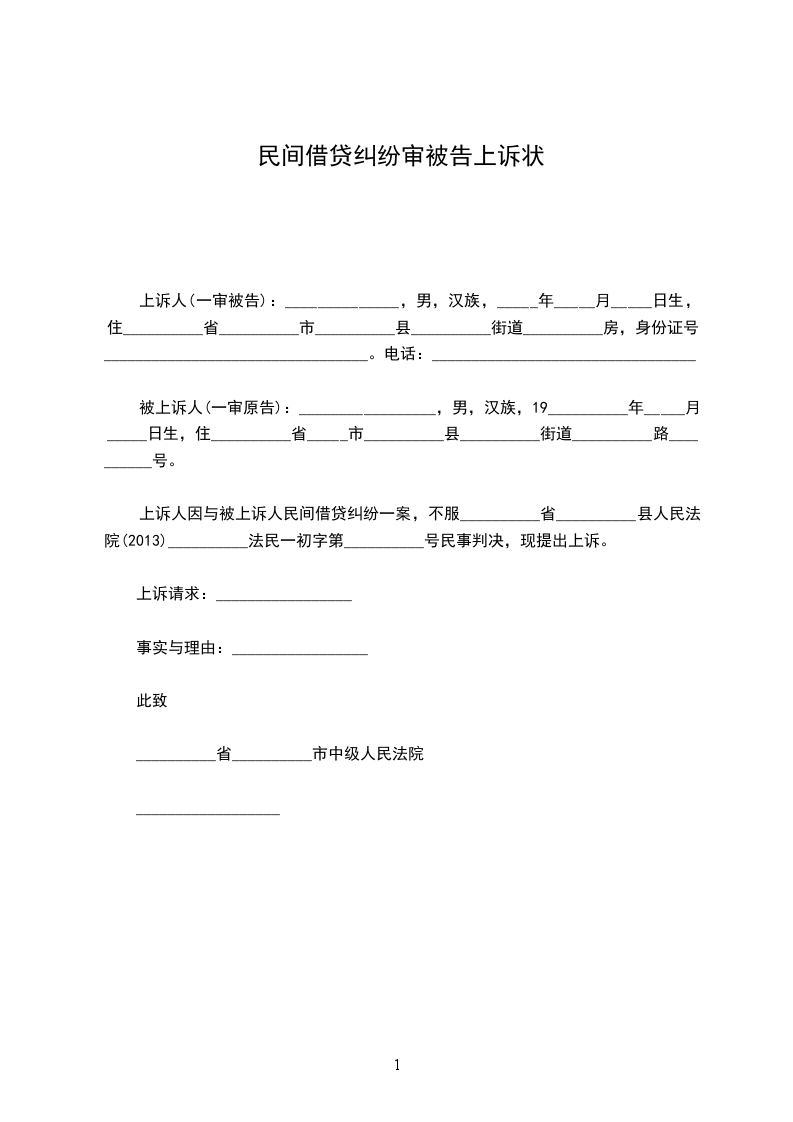 上诉人(一审被告):______________,男,汉族,_____年_____月_____日生,住__________省__________市__________县__________街道__________房,身份证号:_________________________________。电话:_________________________________。