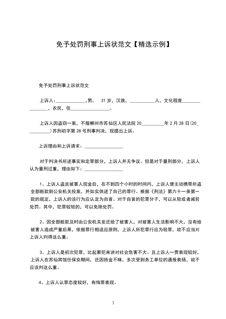 上诉人:_____________,男,31岁,汉族,___________人,文化程度________________,农民,住_________________。