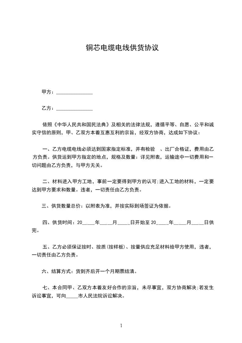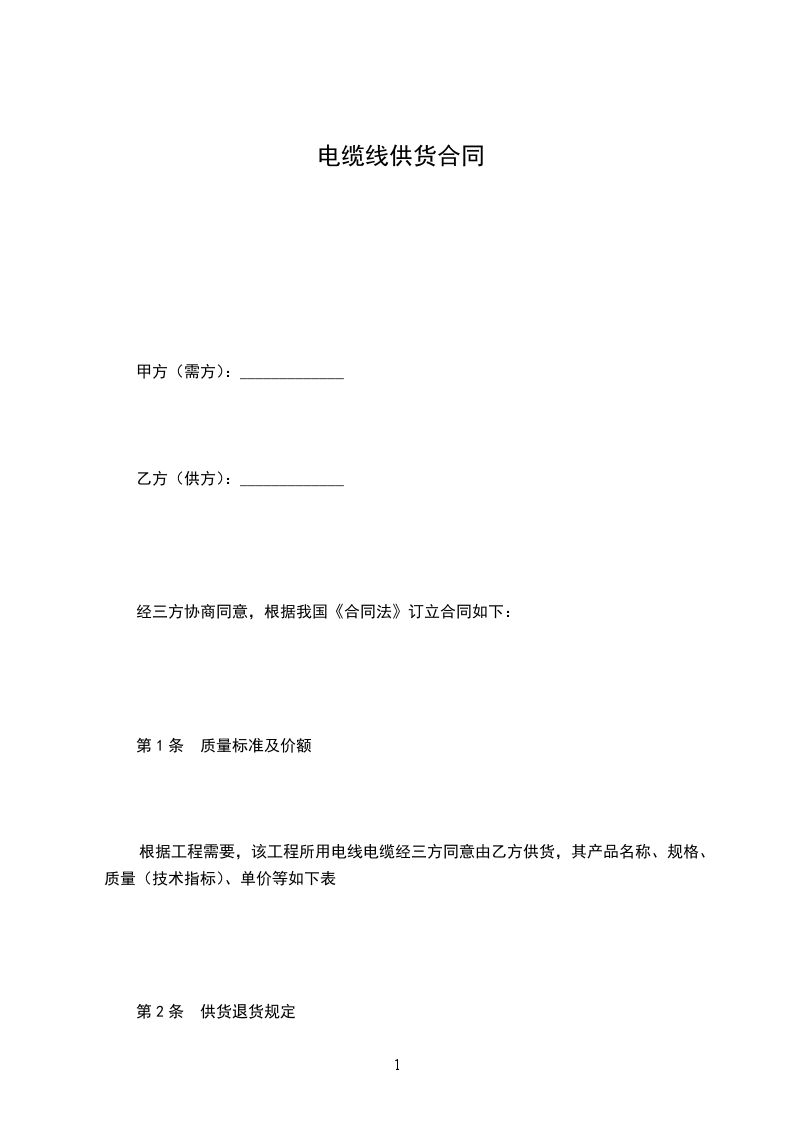 5.退货规定:由于乙方所供货物发现质量问题,乙方必须退货,甲方未使用完的电线电缆乙方同意退货结算。
