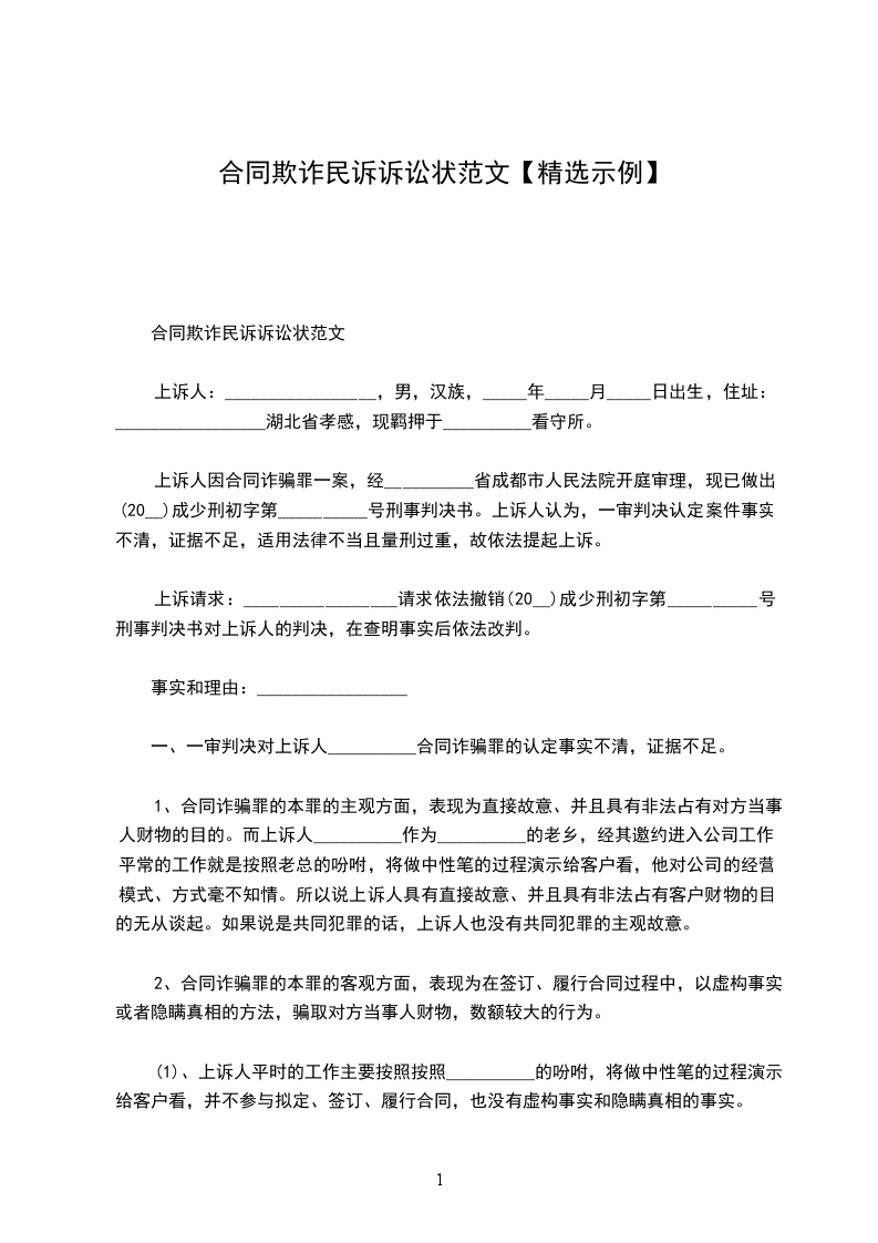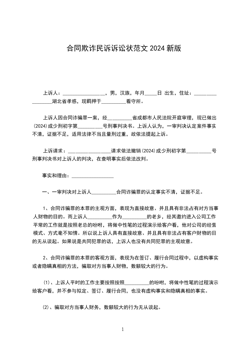 上诉人因合同诈骗罪一案,经__________省成都市人民法院开庭审理,现已做出(2024)成少刑初字第__________号刑事判决书。上诉人认为,一审判决认定案件事实不清,证据不足,适用法律不当且量刑过重,故依法提起上诉。
