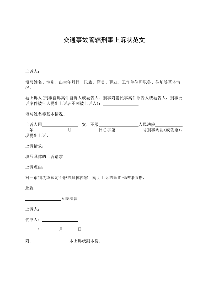 附:_________________本上诉状副本份。