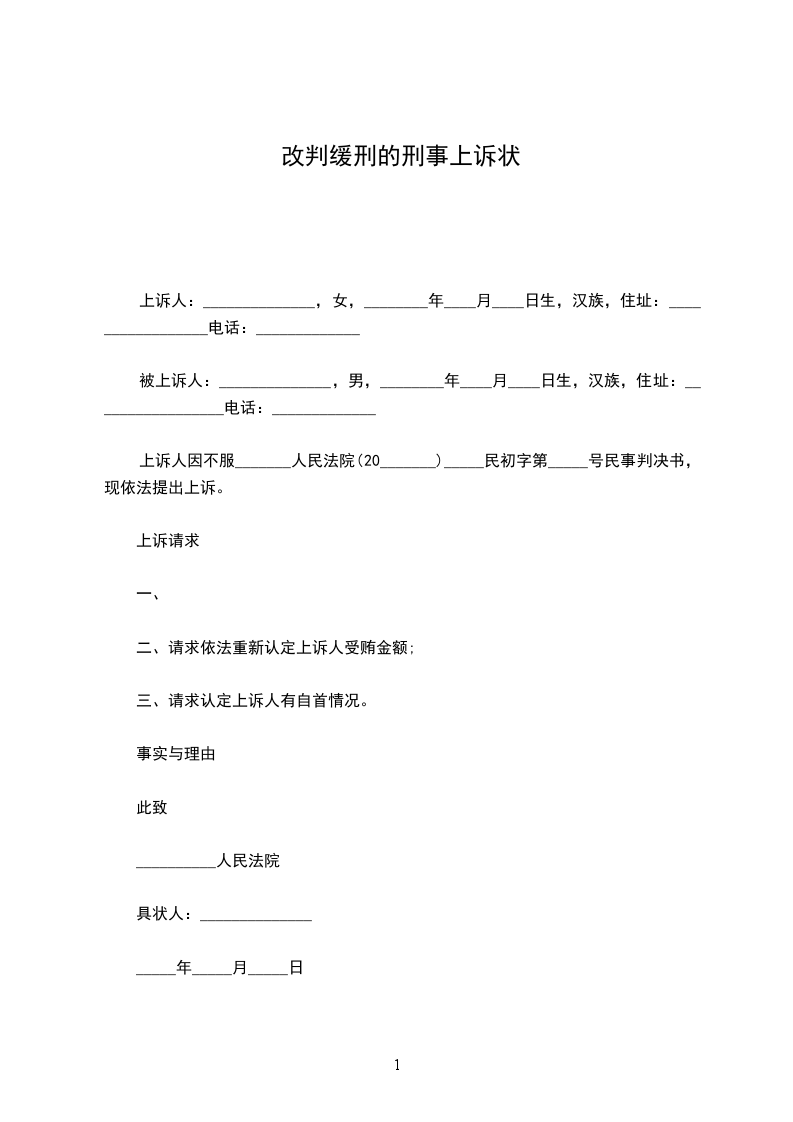上诉人:______________,女,________年____月____日生,汉族,住址:_________________电话:_____________