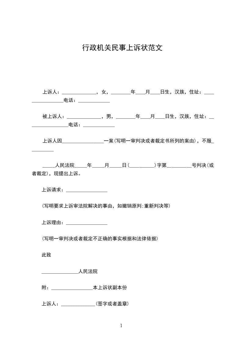 上诉人:______________,女,________年____月____日生,汉族,住址:_________________电话:_____________