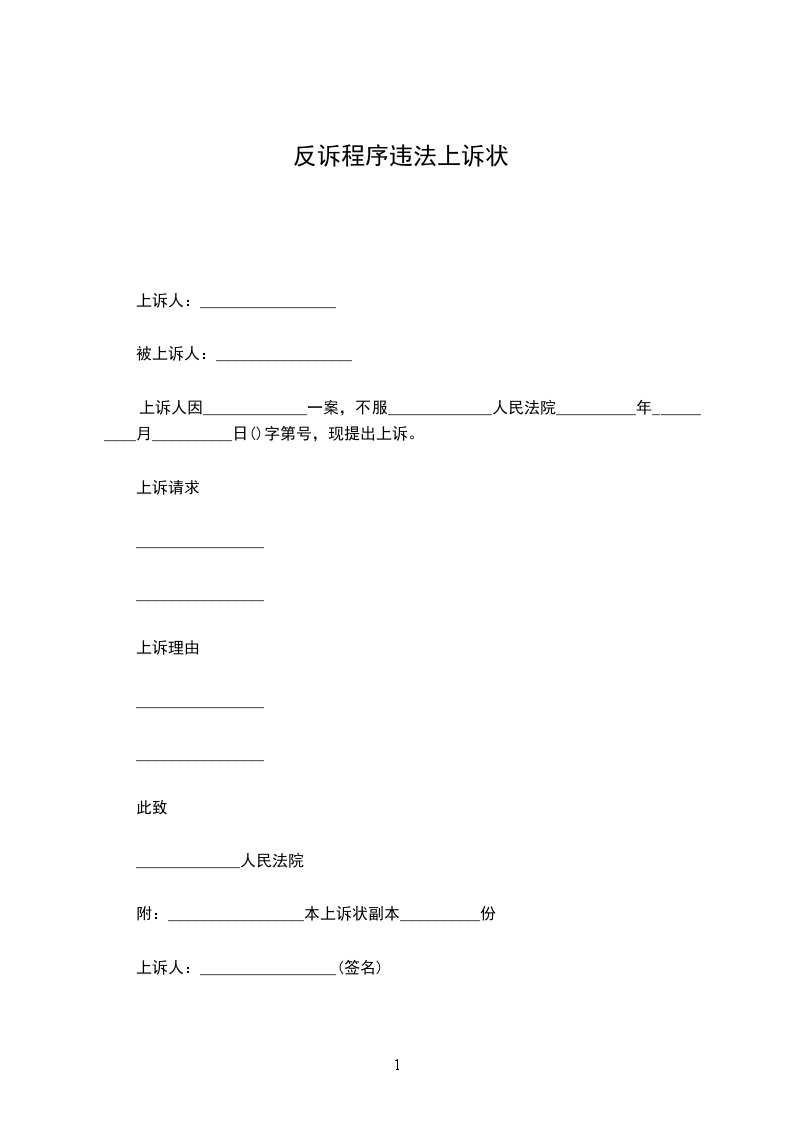 附:_________________本上诉状副本__________份