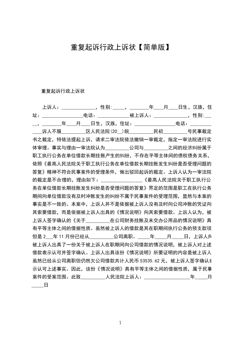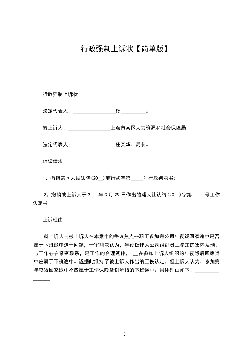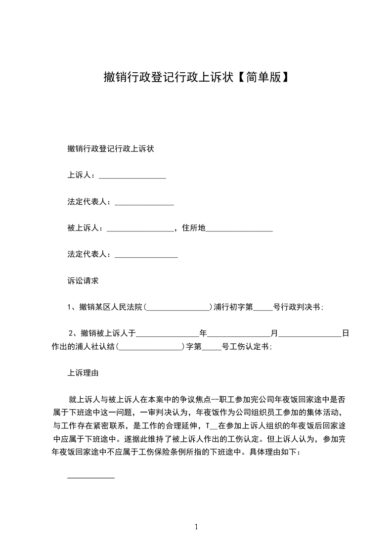 上诉人:______________,女,________年____月____日生,汉族,住址:_________________电话:_____________