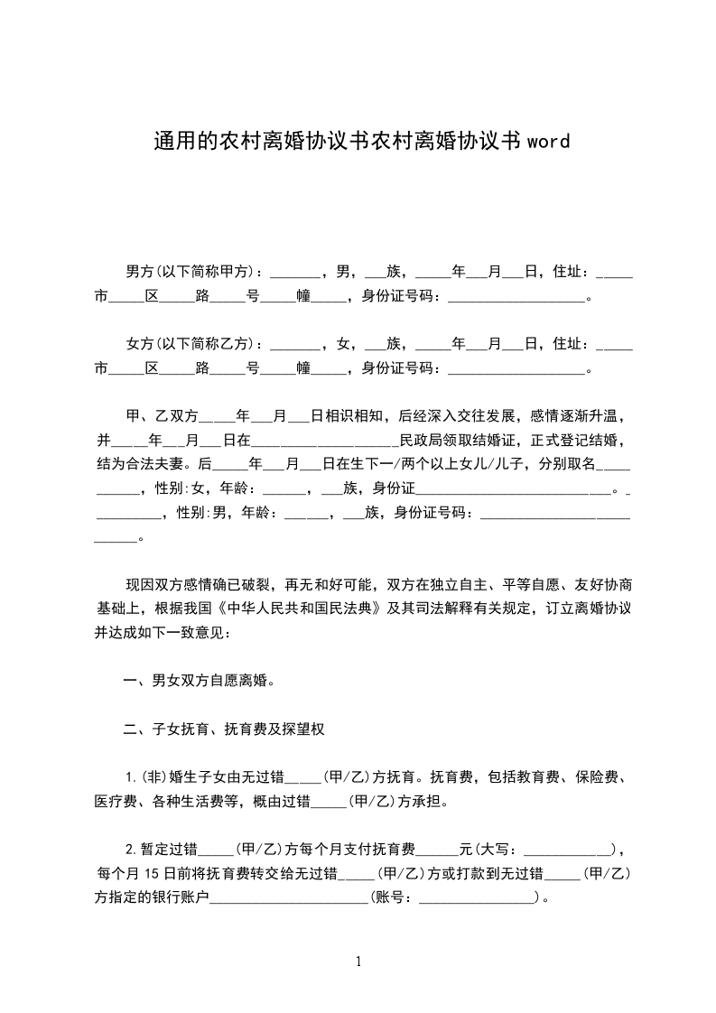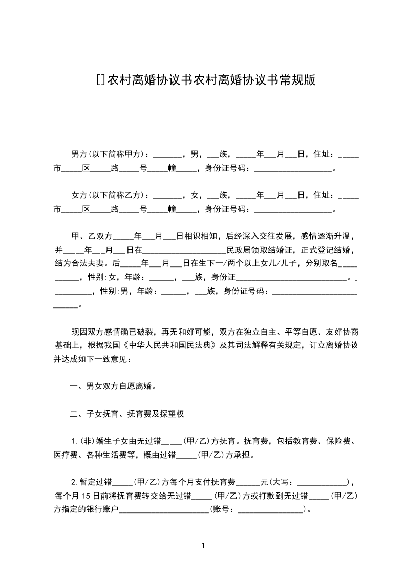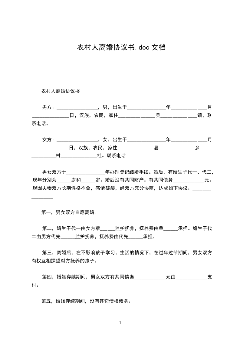 女方:_________________,女,出生于________________年_______________月_______________日,汉族,农民,家住_______________县_______________乡_______________村_______________社。联系电话.