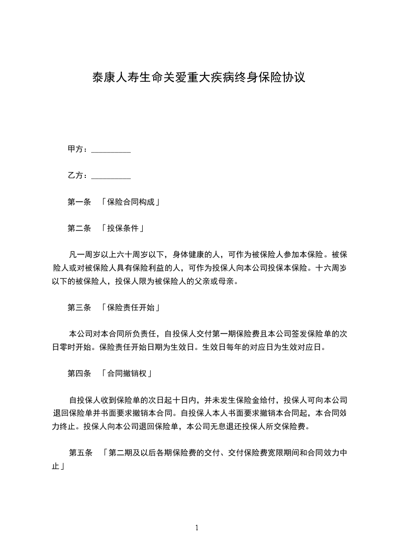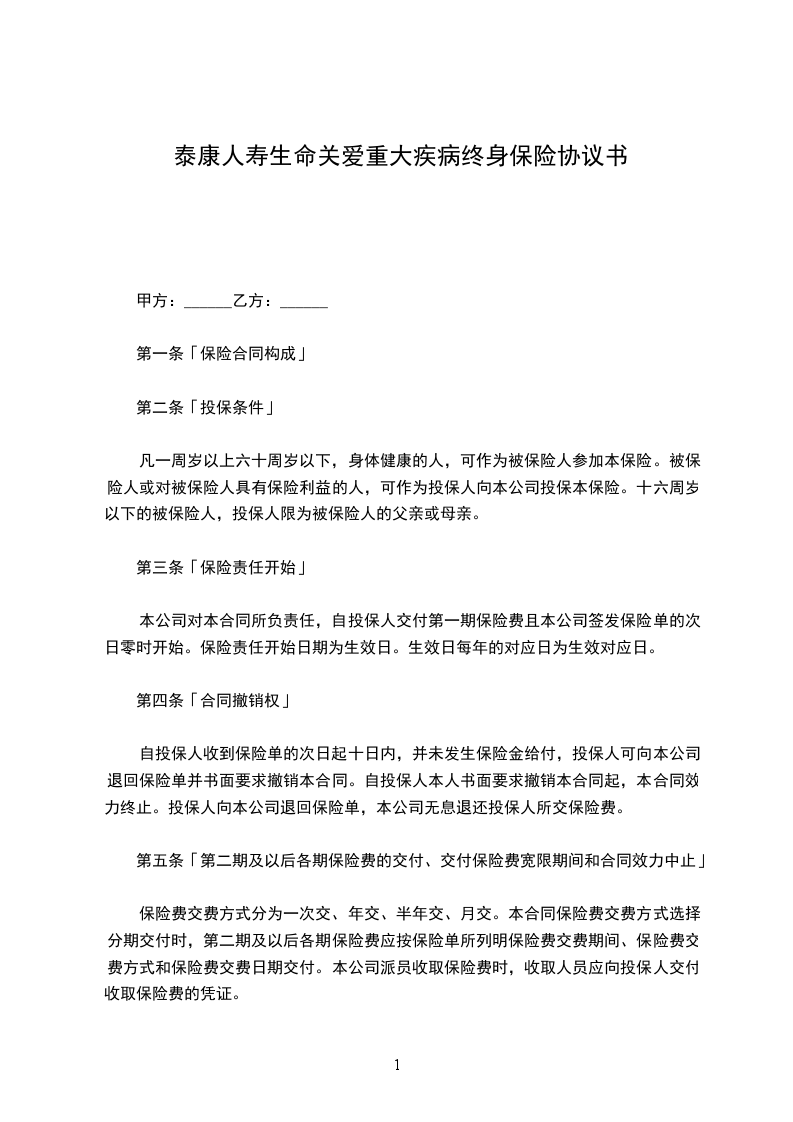 一、被保险人在本合同生效(或复效)之日起一百八十日后初次发生、并经本公司指定或认可的医疗机构确诊患重大疾病(无论一种或多种)时,本公司按基本保额的二倍给付重大疾病保险金,本合同的重大疾病保险金给付责任即行终止。