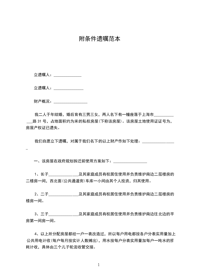 二、该房屋属于我们二人的合法共同财产,对于该房屋的分配主张是我们的真实意思表示。本遗嘱是在我们神志清醒时自愿所立,其他子女不得有异议。