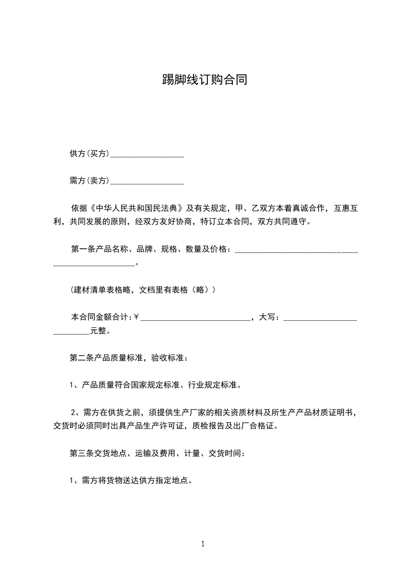 踢脚线订购合同