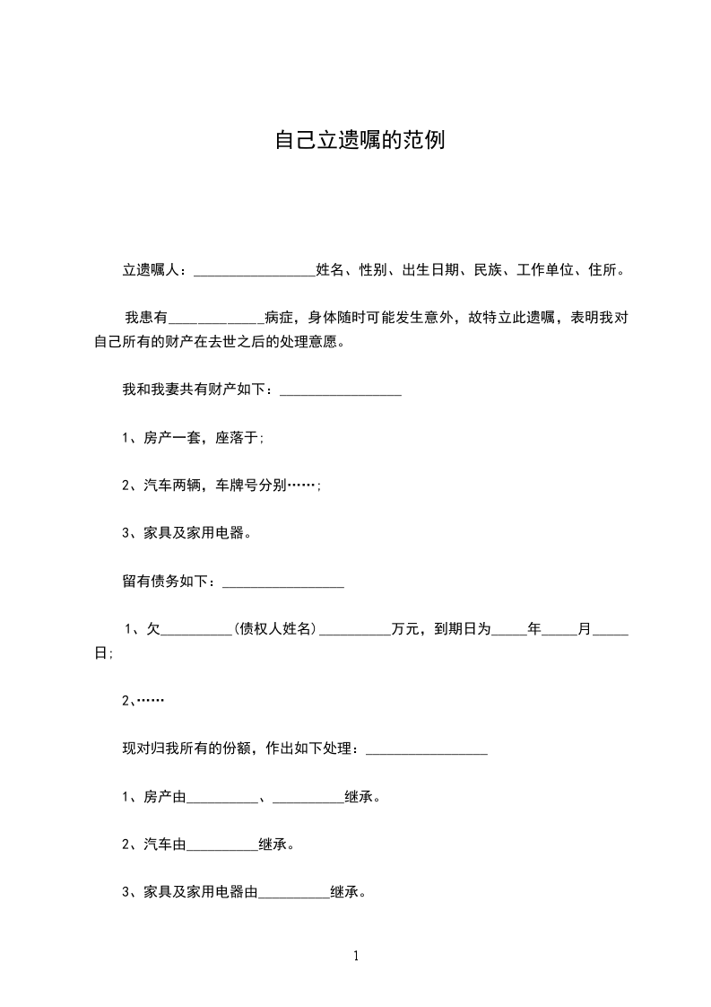我患有_____________病症,身体随时可能发生意外,故特立此遗嘱,表明我对自己所有的财产在去世之后的处理意愿。