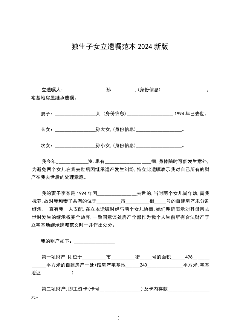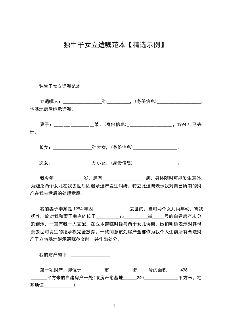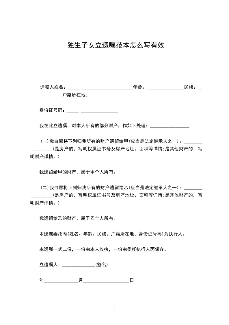 遗嘱人姓名:________________年龄:________________民族:________________户籍所在地:________________