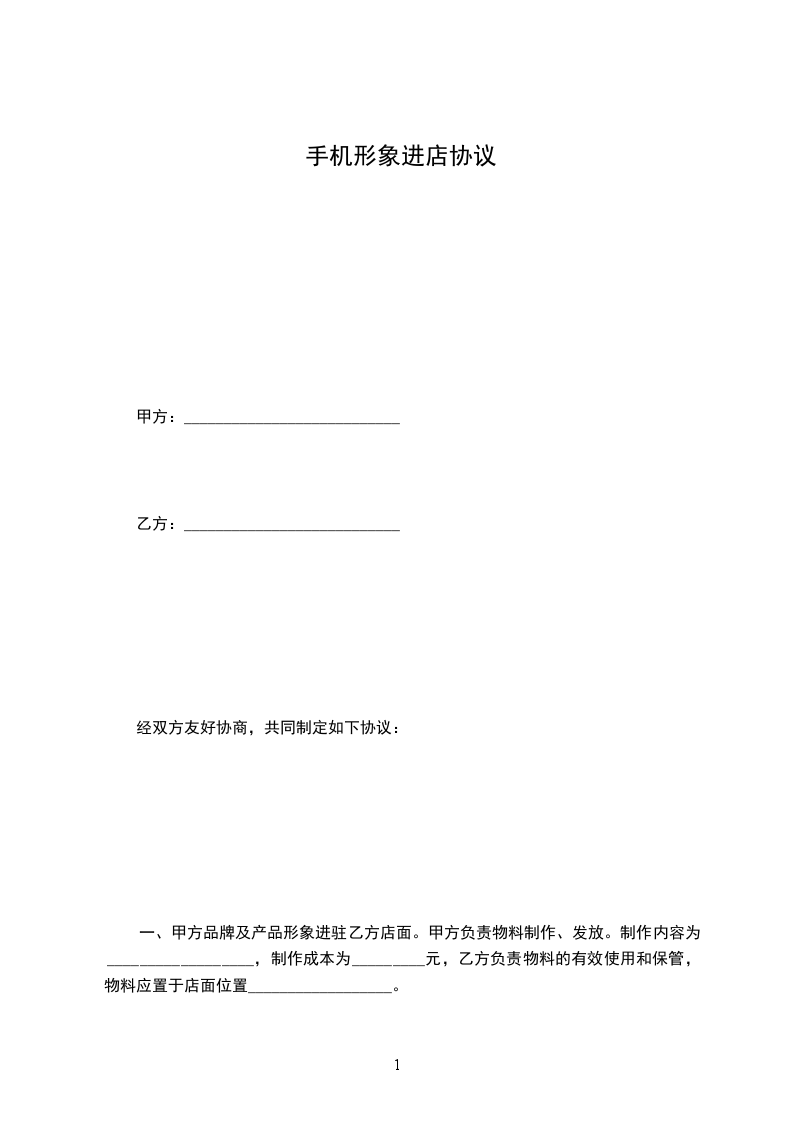 一、甲方品牌及产品形象进驻乙方店面。甲方负责物料制作、发放。制作内容为__________________,制作成本为_________元,乙方负责物料的有效使用和保管,物料应置于店面位置__________________。