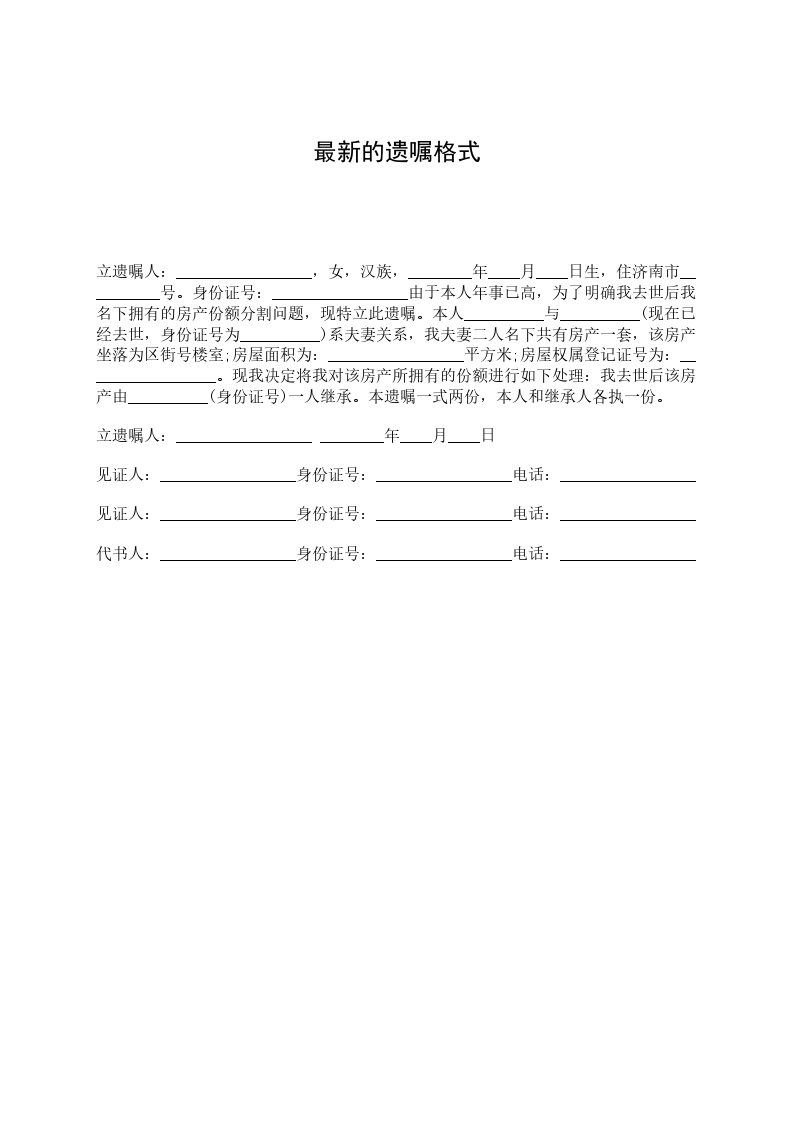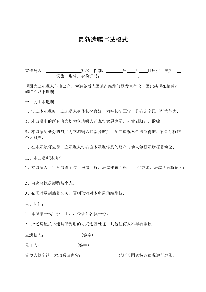 立遗嘱人:_________________姓名、性别、出生日期、民族、工作单位、住所。