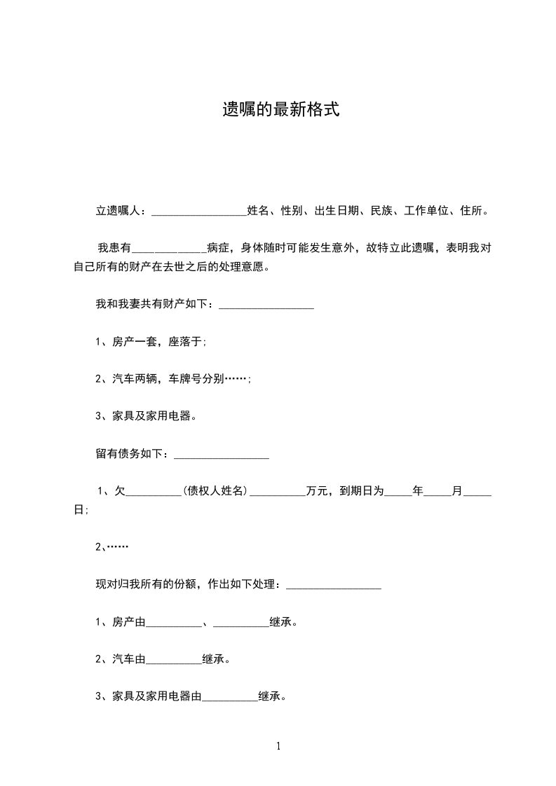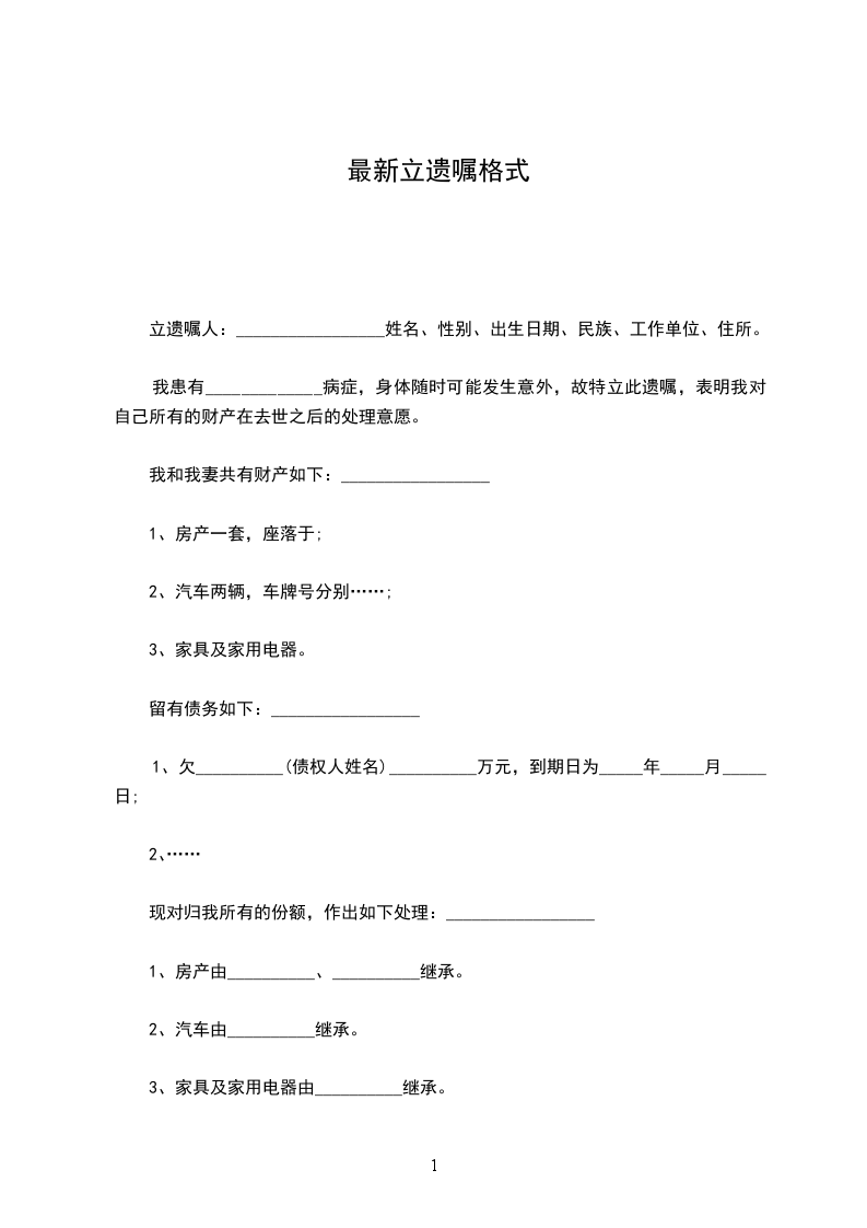 我患有_____________病症,身体随时可能发生意外,故特立此遗嘱,表明我对自己所有的财产在去世之后的处理意愿。