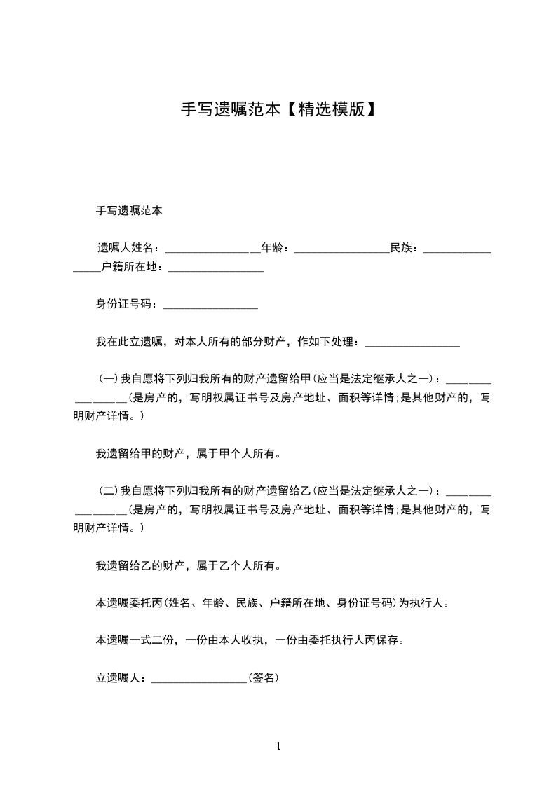 二、我自我的财产在我死后按如下方式予以分割和继承:_________________