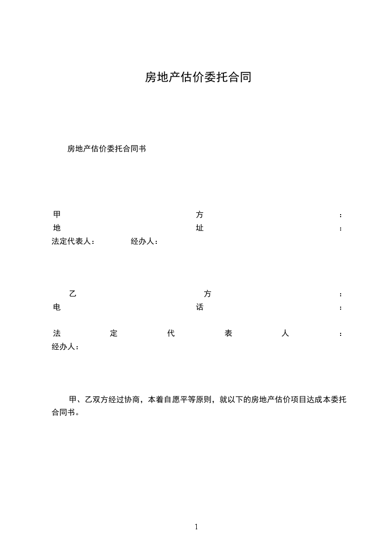 甲、乙双方经过协商,本着自愿平等原则,就以下的房地产估价项目达成本委托合同书。