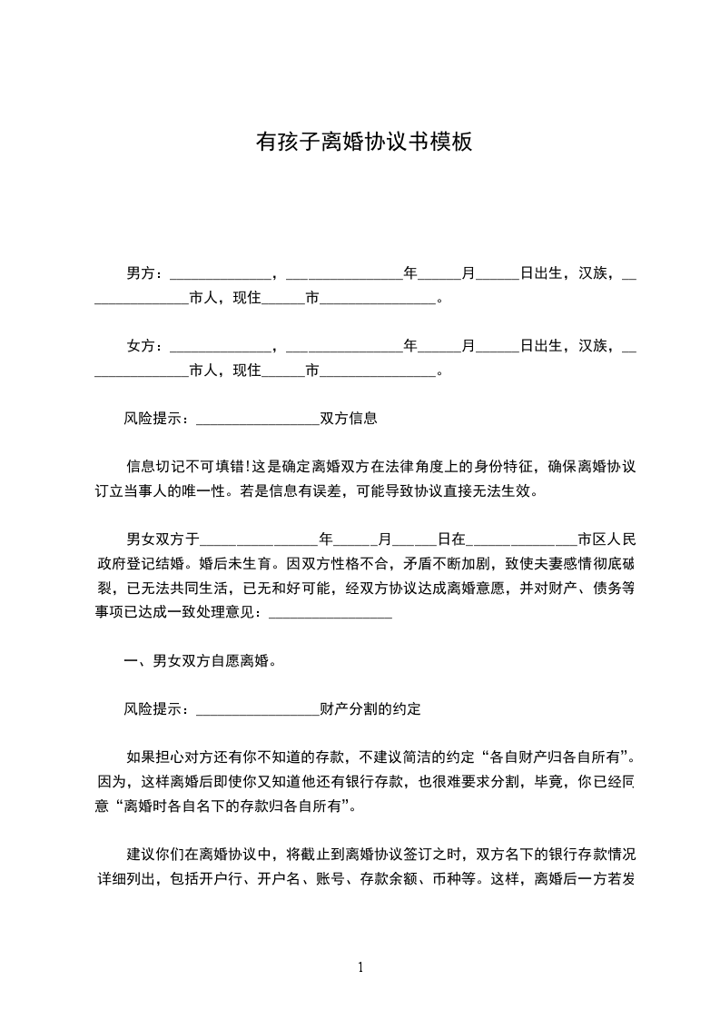 风险提示:_________________财产分割的约定