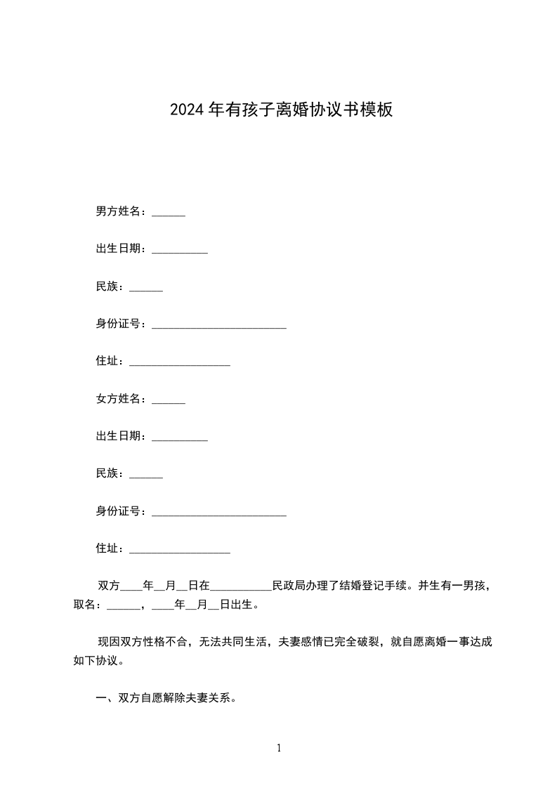 女方:______________,________________年______月______日出生,汉族,_______________市人,现住______市________________。