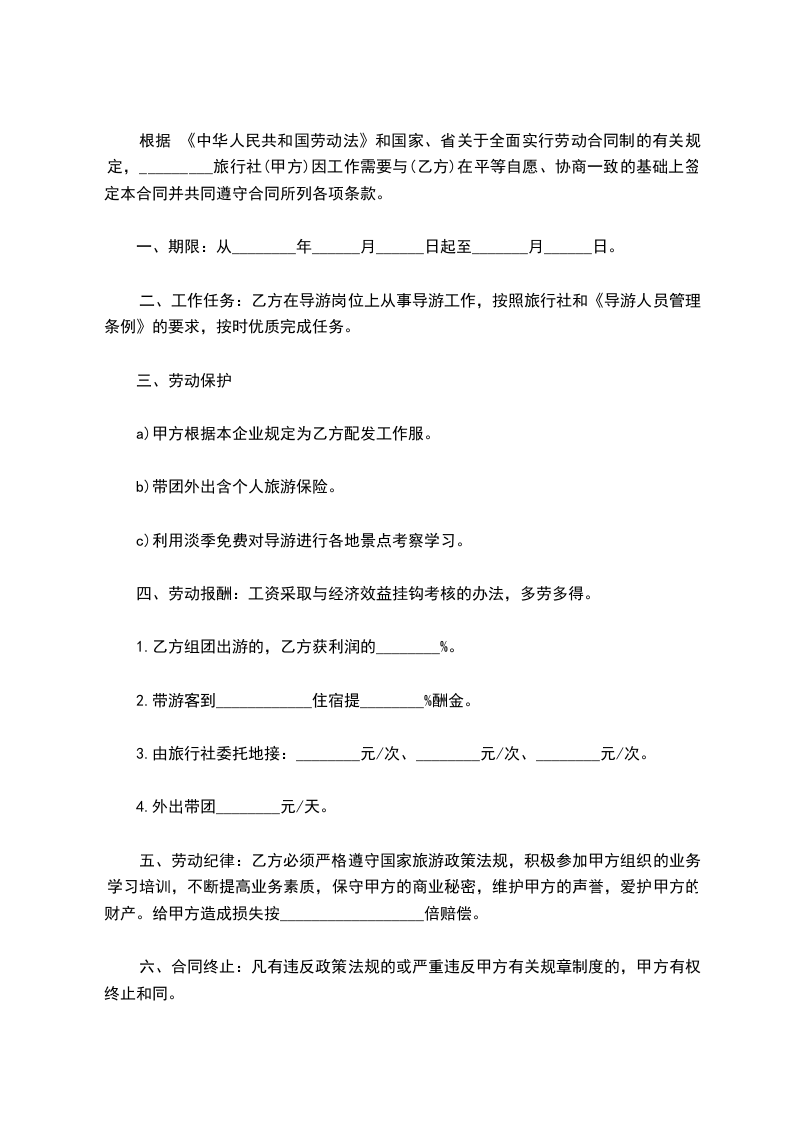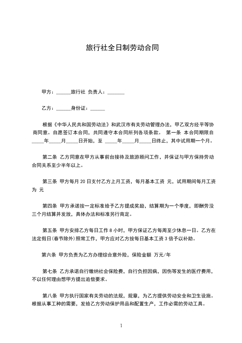 甲方(用人单位)名称:_________________国际旅行社有限公司