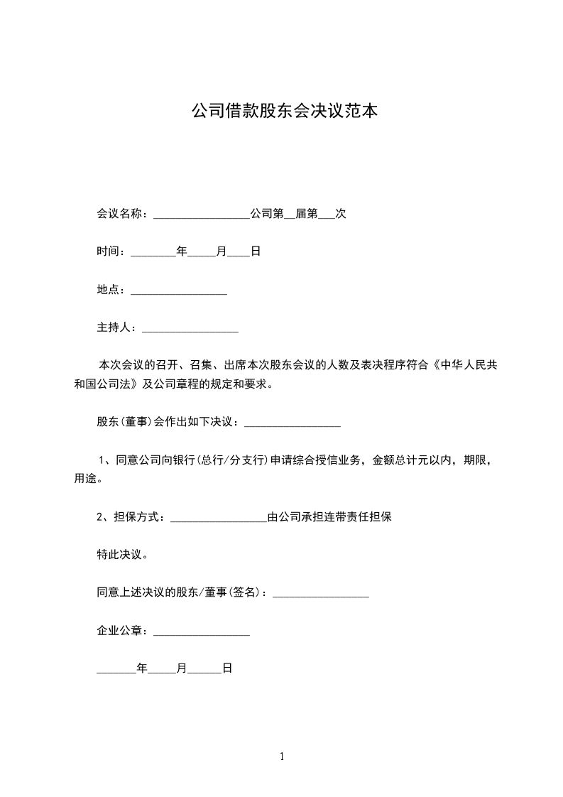 1、同意公司向银行(总行/分支行)申请综合授信业务,金额总计_____元以内,期限,用途。