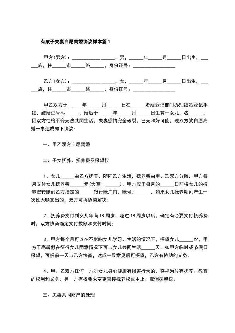 女方:___________出生年月:___________民族:_______身份证号:______________________住址:_________________________________