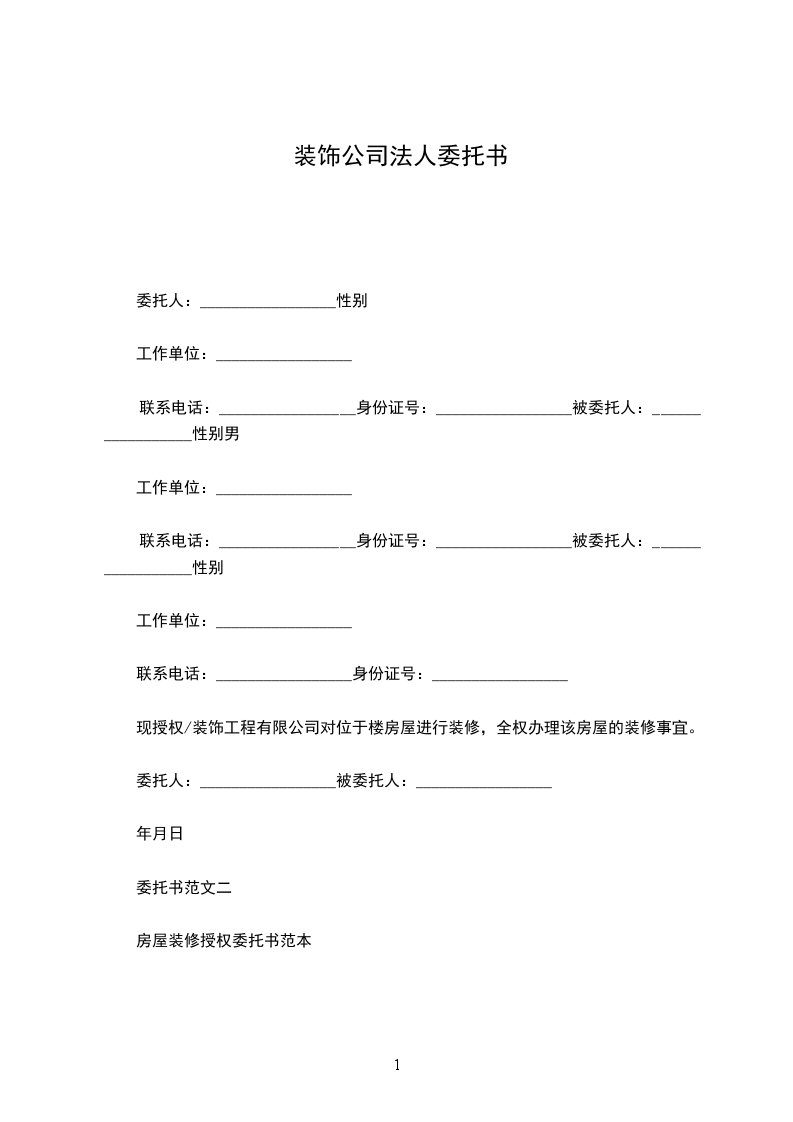 兹委托________________装饰公司承装_________________先生在________________号楼________________单元_________________室住宅一套,面积_____________平米,在装修过程中所有事宜,均有_________________负责。