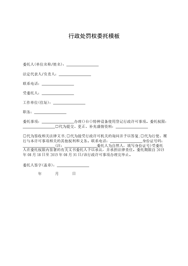 委托事项:_________________办理()台()特种设备使用登记行政许可事项。委托权限:_________________□代为提交、更正、补充盛情资料:_________________