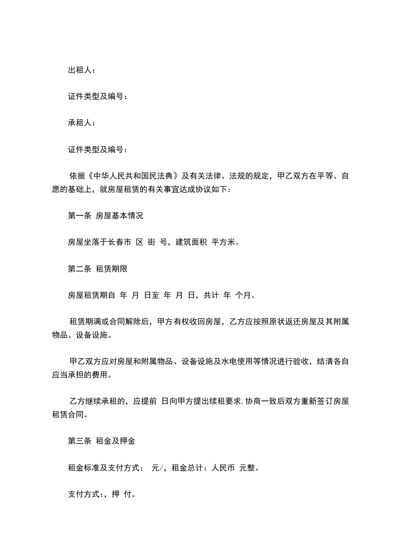 1、该房屋租赁期共一年。自_____年_____月_____日起至_____年_____月_____日止。