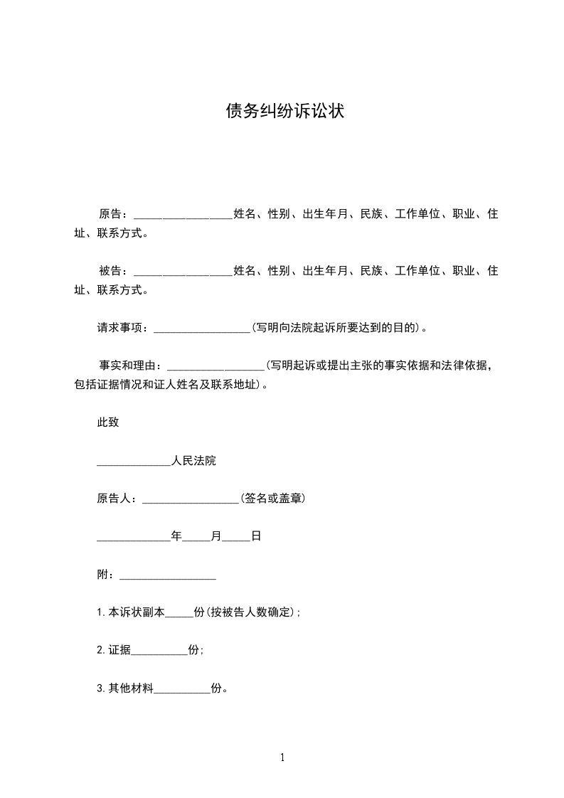 1.本诉状副本_____份(按被告人数确定);
