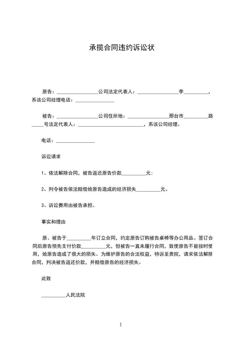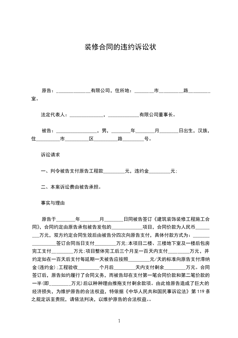 本诉状副本______份。