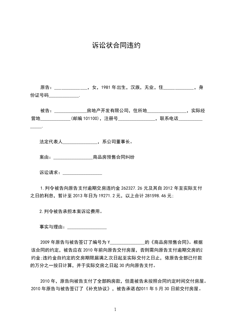 诉讼请求:_________________