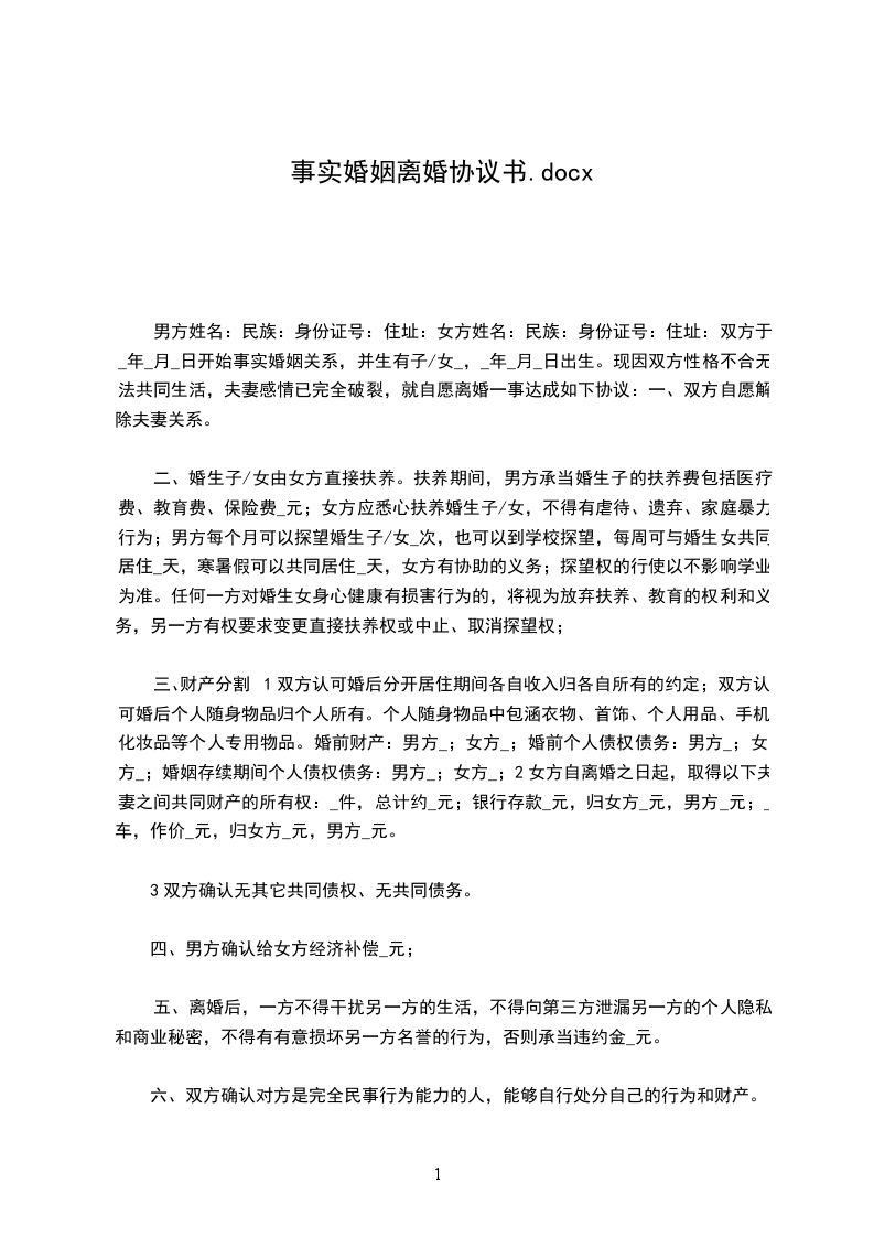 3、婚生女(子)_______________由原(被)告抚养