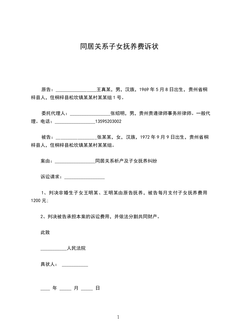 1、判决非婚生子女王明某、王明某由原告抚养,被告每月支付子女抚养费用1200元;