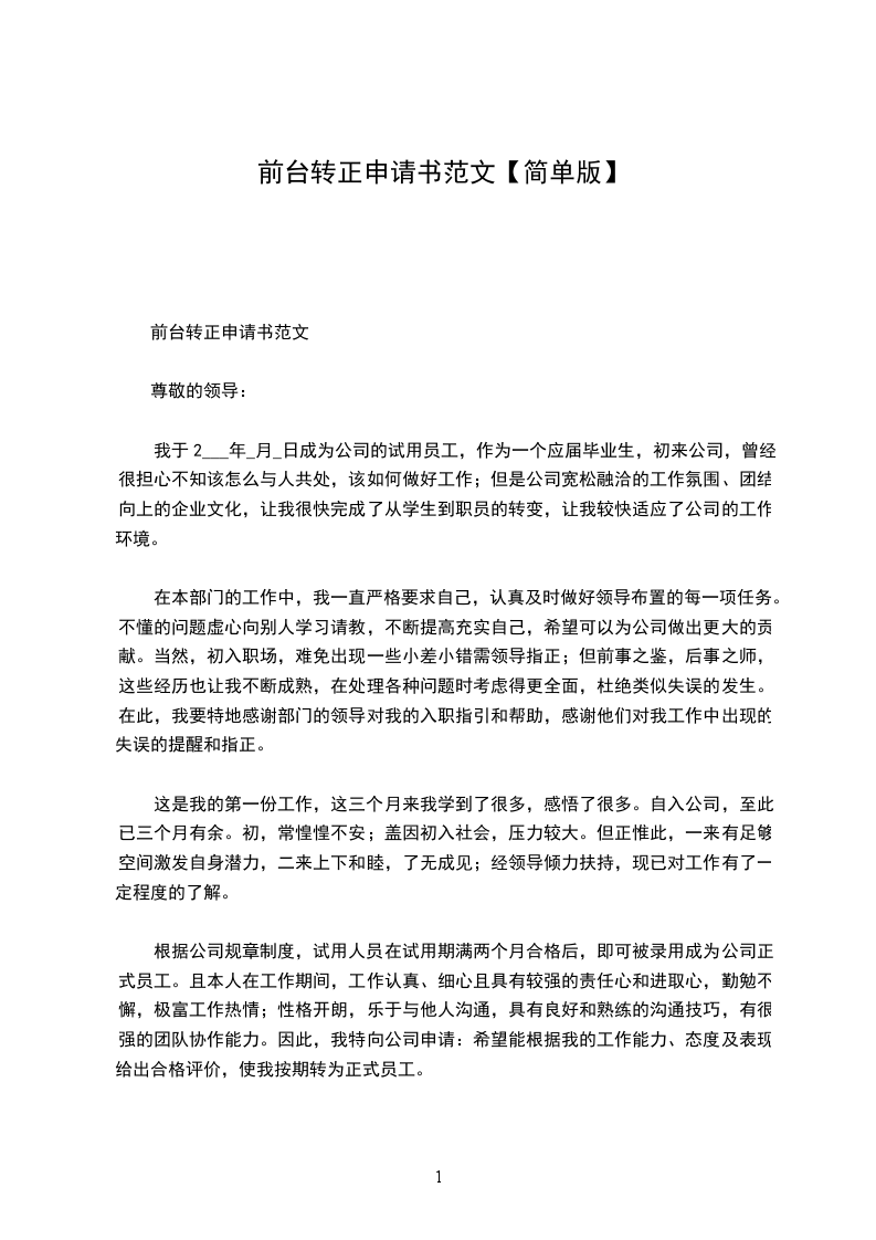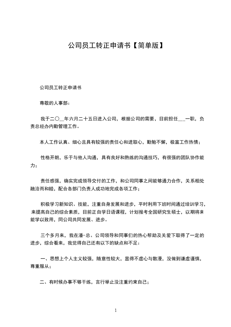 本人自某年某日起到单位工作,到某年某月某日已经顺利完成试用期各项工作。按照劳动合同约定,特申请结束试用期,转为正式员工。今后我将在公司领导下,与全体同事一起,一如既往的为公司的事业奋斗,争取为公司创造更大的业绩。