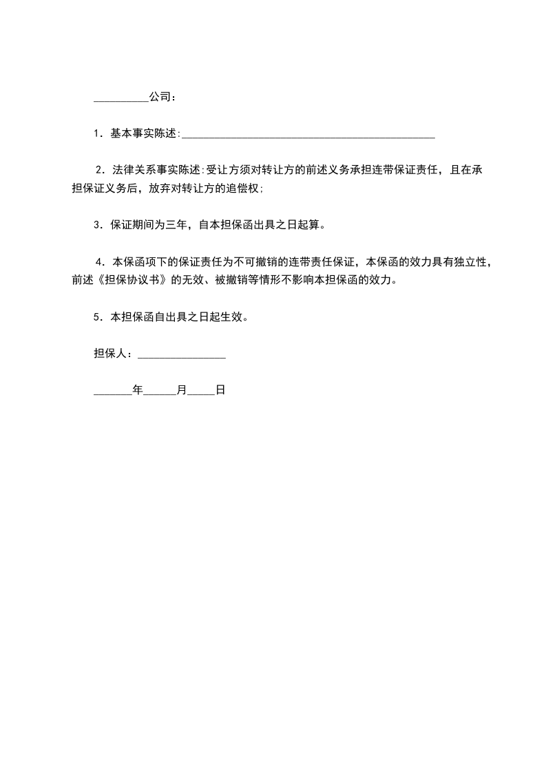 2.法律关系事实陈述:受让方须对转让方的前述义务承担连带保证责任,且在承担保证义务后,放弃对转让方的追偿权;