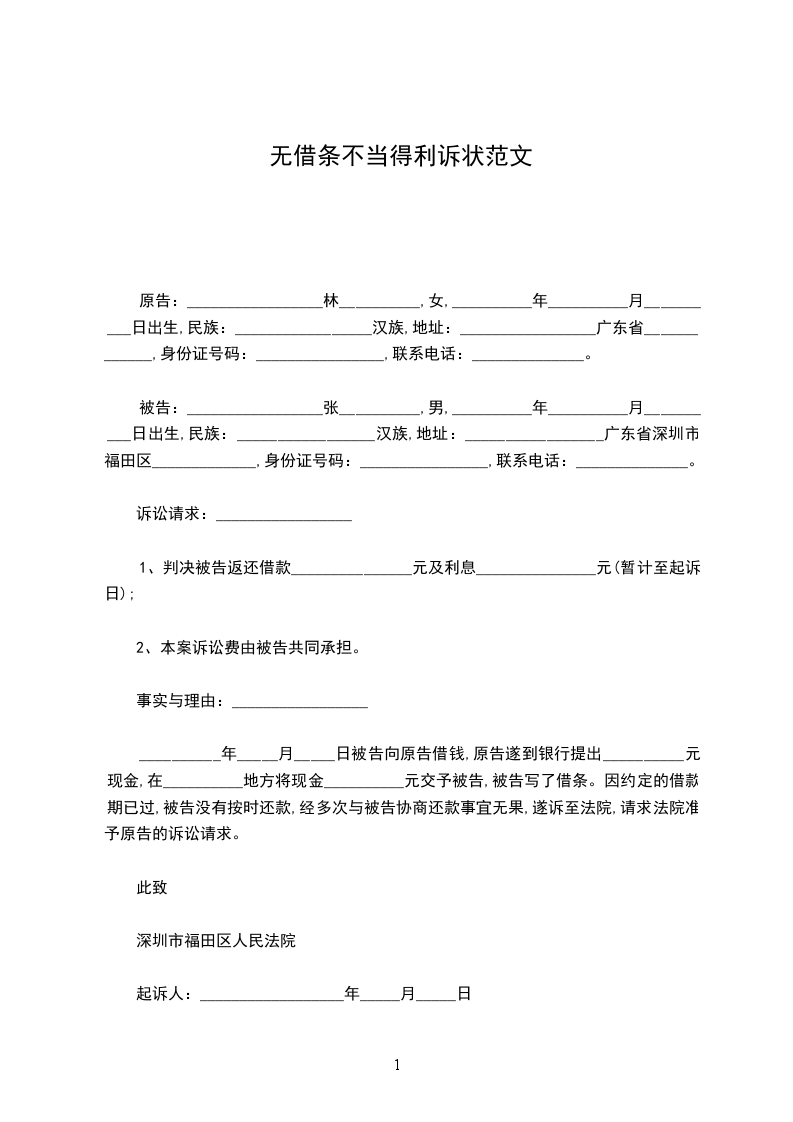 被告:_________________张__________,男,__________年__________月__________日出生,民族:_________________汉族,地址:_________________广东省深圳市福田区_____________,身份证号码:________________,联系电话:______________。