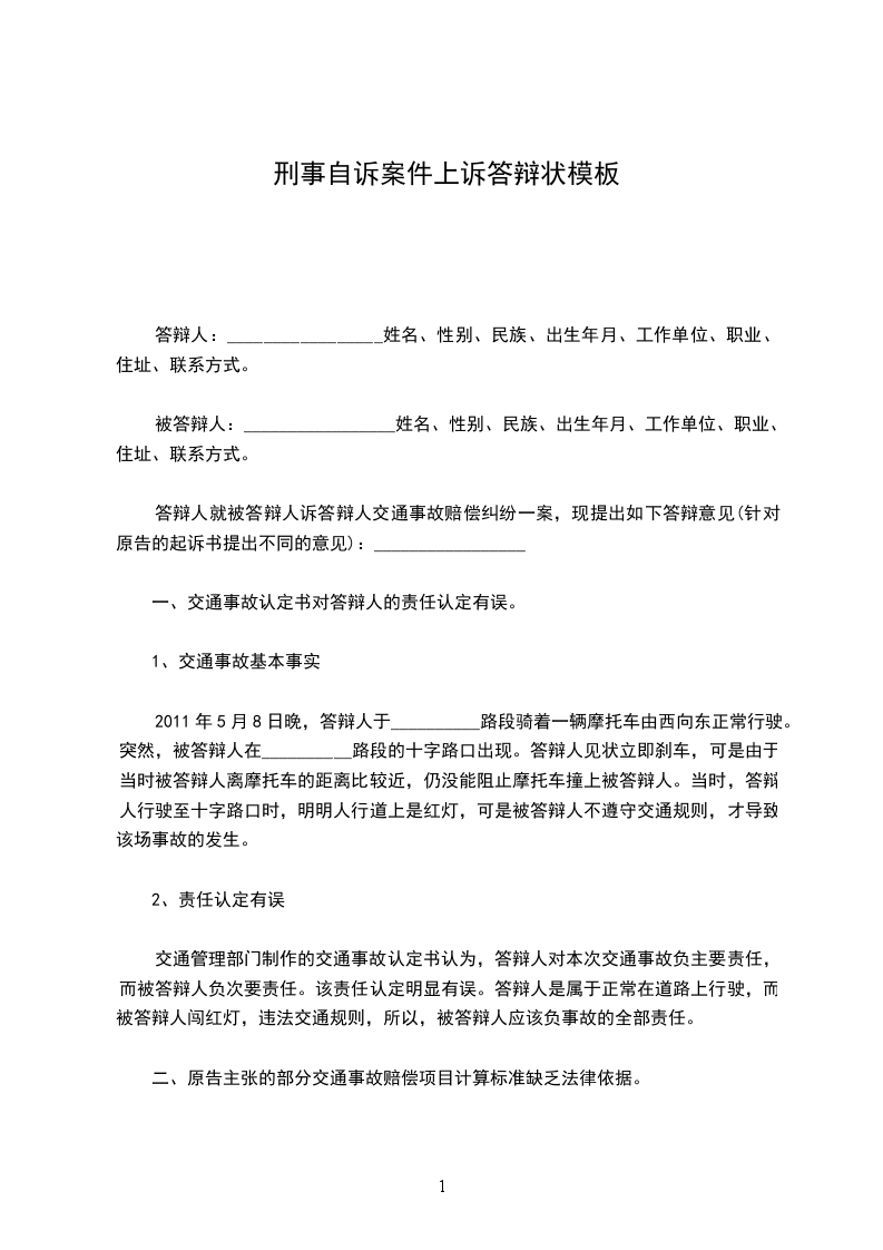 答辩人就被答辩人诉答辩人交通事故赔偿纠纷一案,现提出如下答辩意见(针对原告的起诉书提出不同的意见):_________________