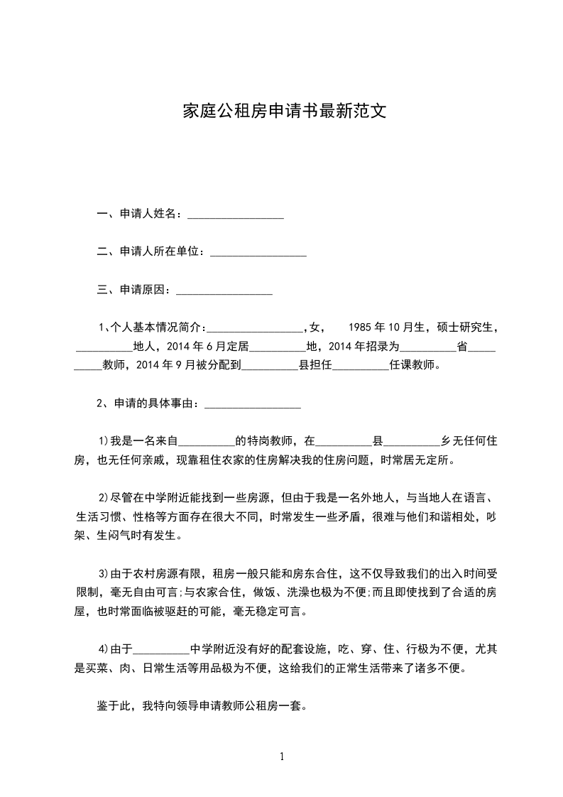 1)我是一名来自__________的特岗教师,在__________县__________乡无任何住房,也无任何亲戚,现靠租住农家的住房解决我的住房问题,时常居无定所。