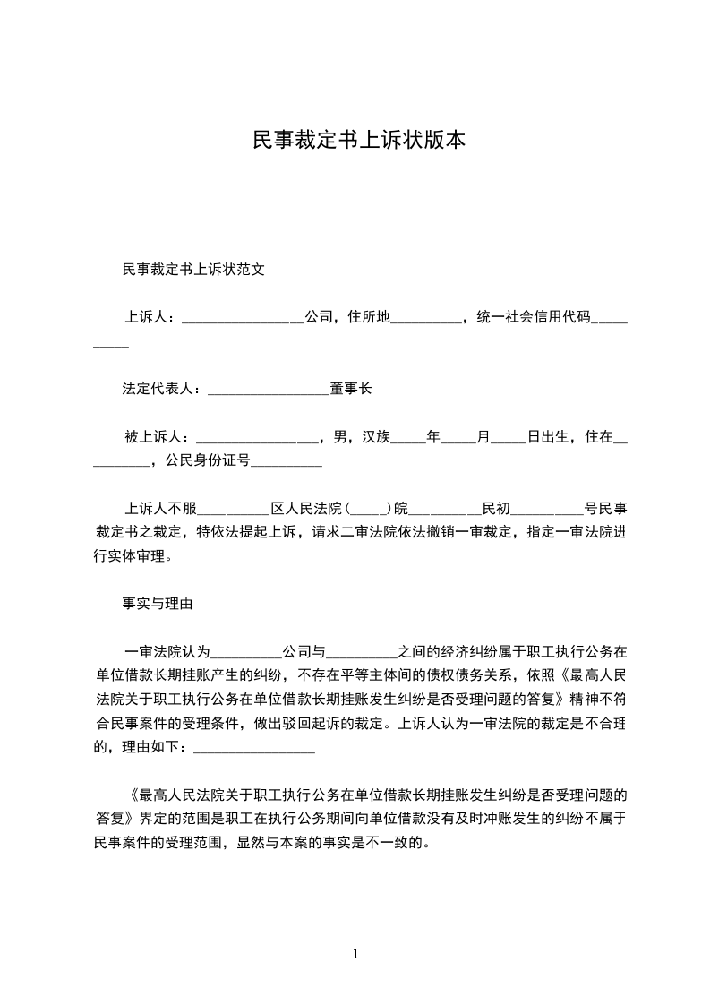 上诉人:_________________姓名、性别、出生年月、民族、文化程度、工作单位、职业、住址。(上诉人如为单位,应写明单位名称、法定代表人姓名及职务、单位地址)。