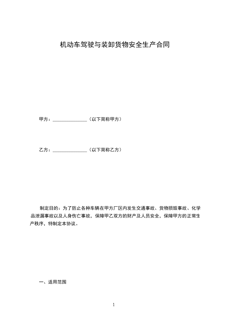 制定目的:为了防止各种车辆在甲方厂区内发生交通事故、货物损毁事故、化学品泄漏事故以及人身伤亡事故,保障甲乙双方的财产及人员安全,保障甲方的正常生产秩序,特制定本协议。