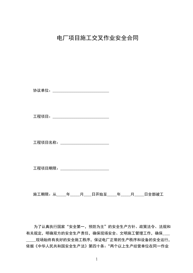 为了认真执行国家“安全第一,预防为主”的安全生产方针、政策法令、法规和有关规定,明确双方的安全生产责任,确保现场安全、文明施工管理工作,确保_________现场始终有良好的安全施工秩序,保证电厂正常的生产秩序和设备的安全运行,依据《中华人民共和国安全生产法》第四十条:“两个以上生产经营单位在同一作业区域内进行生产经营活动,可能危及对方生产安全的,应当签订安全生产管理协议,明确各自的安全生产管理职责和应当采取的安全措施,并指定专职安全生产管理人员进行安全检查与协调”的规定。经双方协商同意,制定此合同,双方遵照履行。