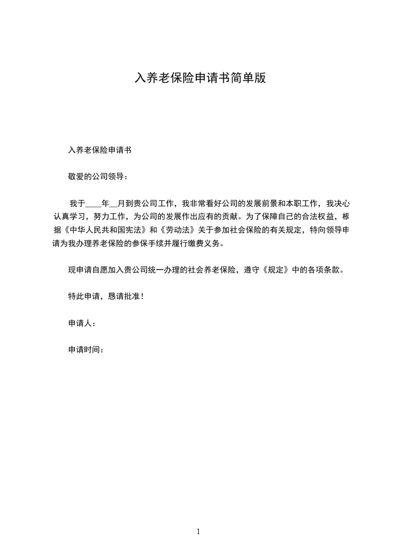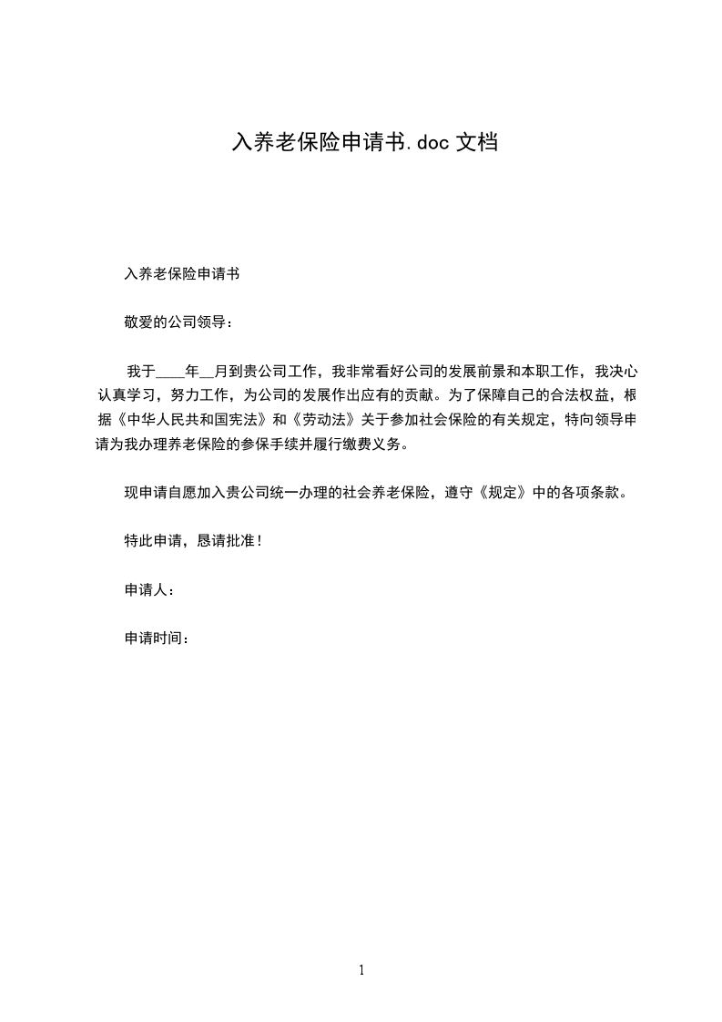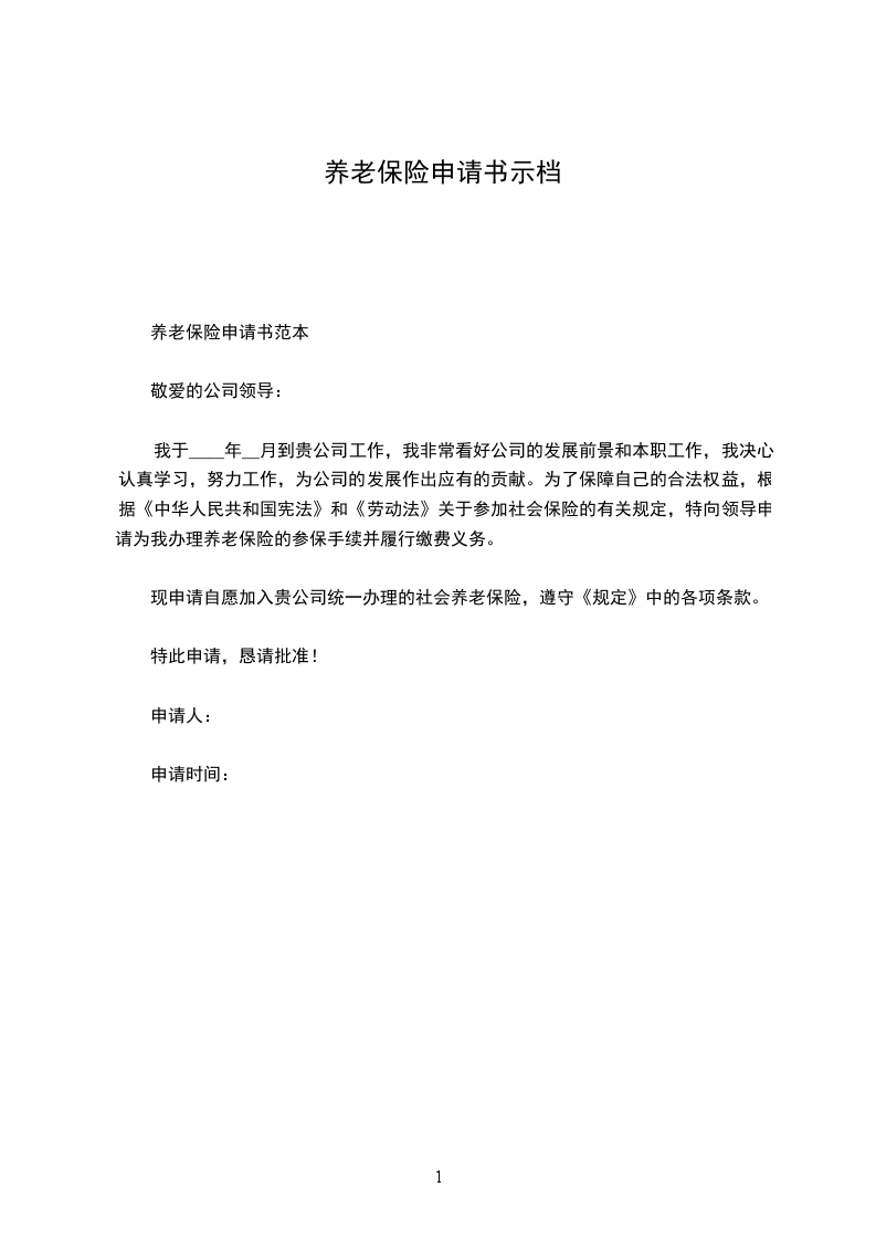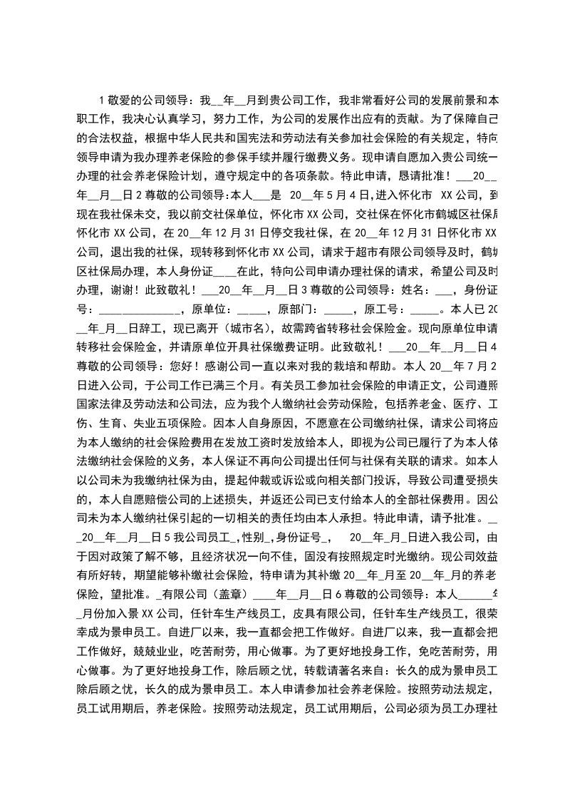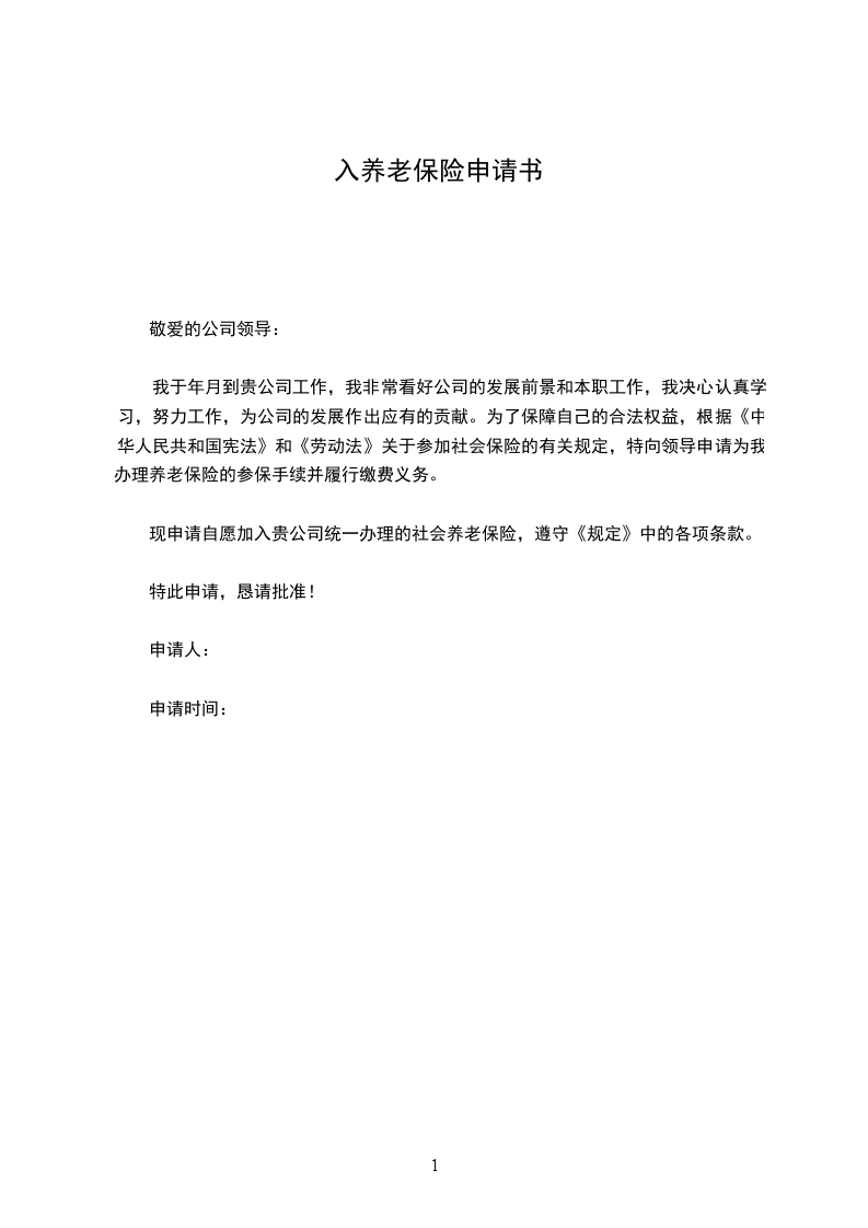 我于年月到贵公司工作,我非常看好公司的发展前景和本职工作,我决心认真学习,努力工作,为公司的发展作出应有的贡献。为了保障自己的合法权益,根据《中华人民共和国宪法》和《劳动法》关于参加社会保险的有关规定,特向领导申请为我办理养老保险的参保手续并履行缴费义务。