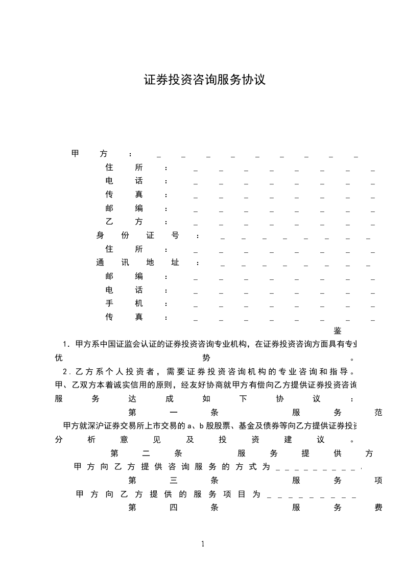 1.甲方仅就深沪证券交易所上市交易的a、b股股票及基金等向乙方提供证券投资分析意见及投资建议,上述建议仅供乙方参考之用,甲方不保证据此操作一定能获得收益或避免损失;